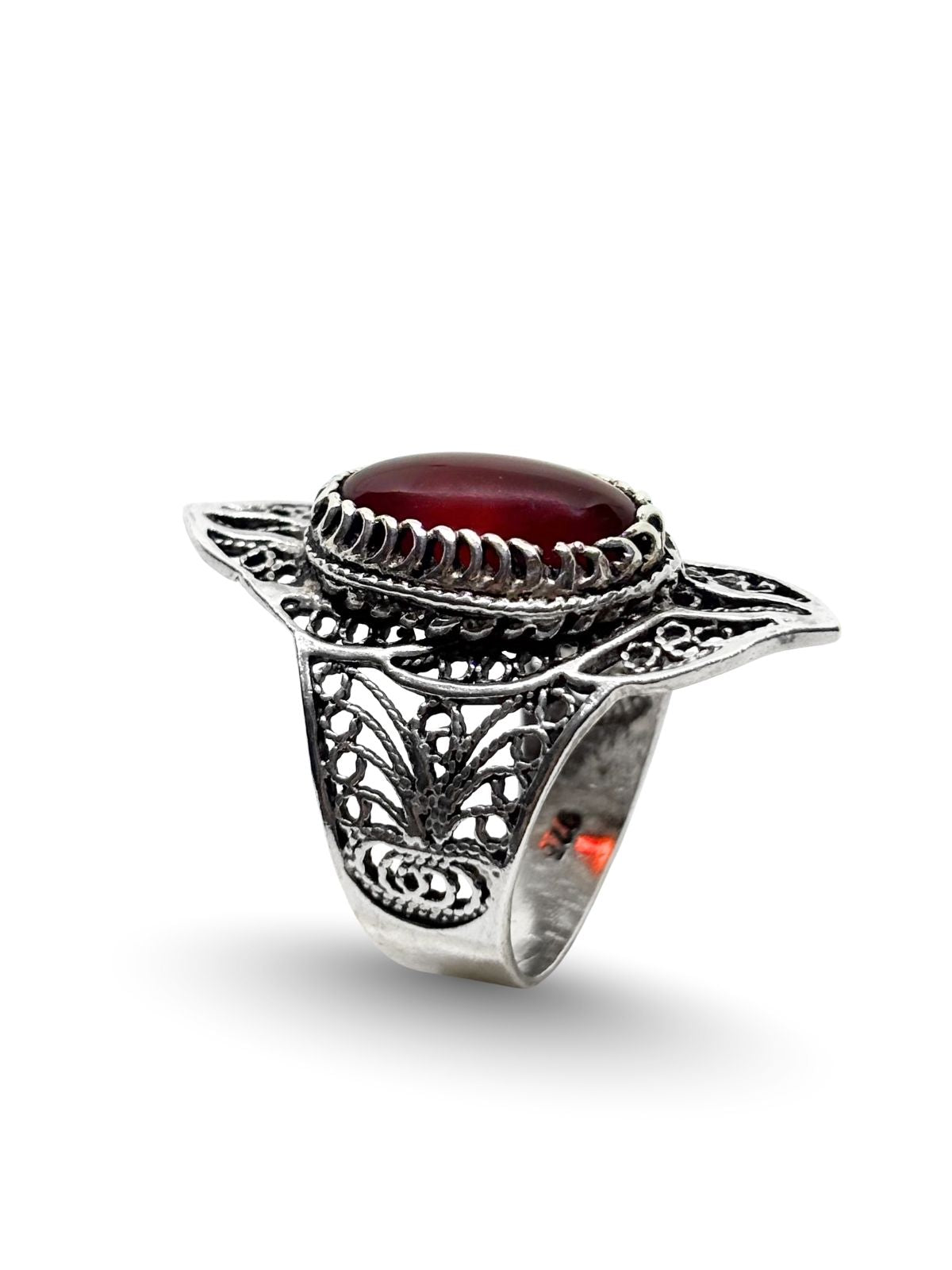 Otantik Oval Akik Taşlı Retro Telkari Gümüş Kadın Yüzük