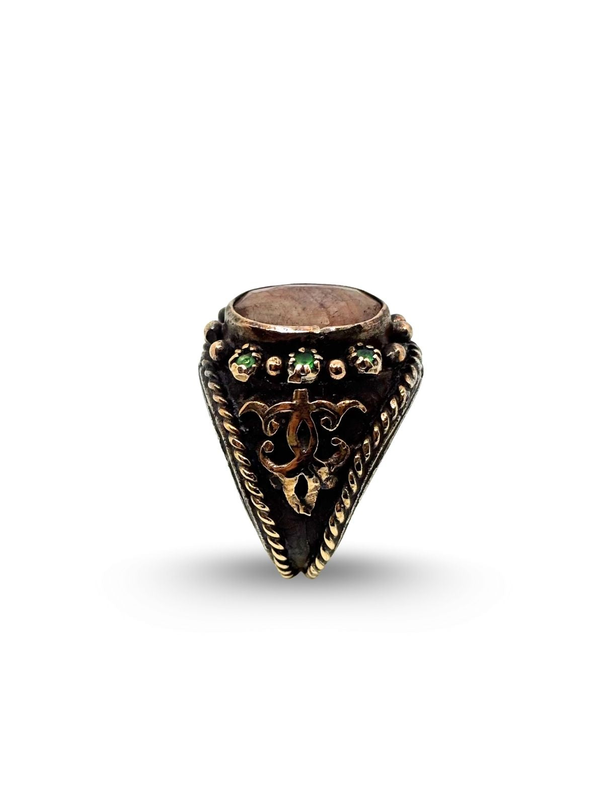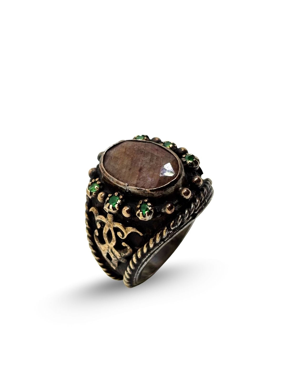 Otantik Zümrüt Çevrili Güneş Taşı Kadın Gümüş Yüzük