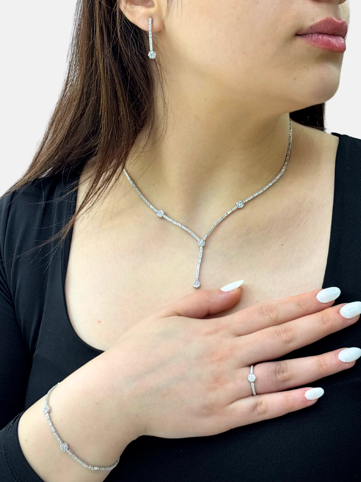 Yuvarlak Su Yolu Gümüş Kadın Set