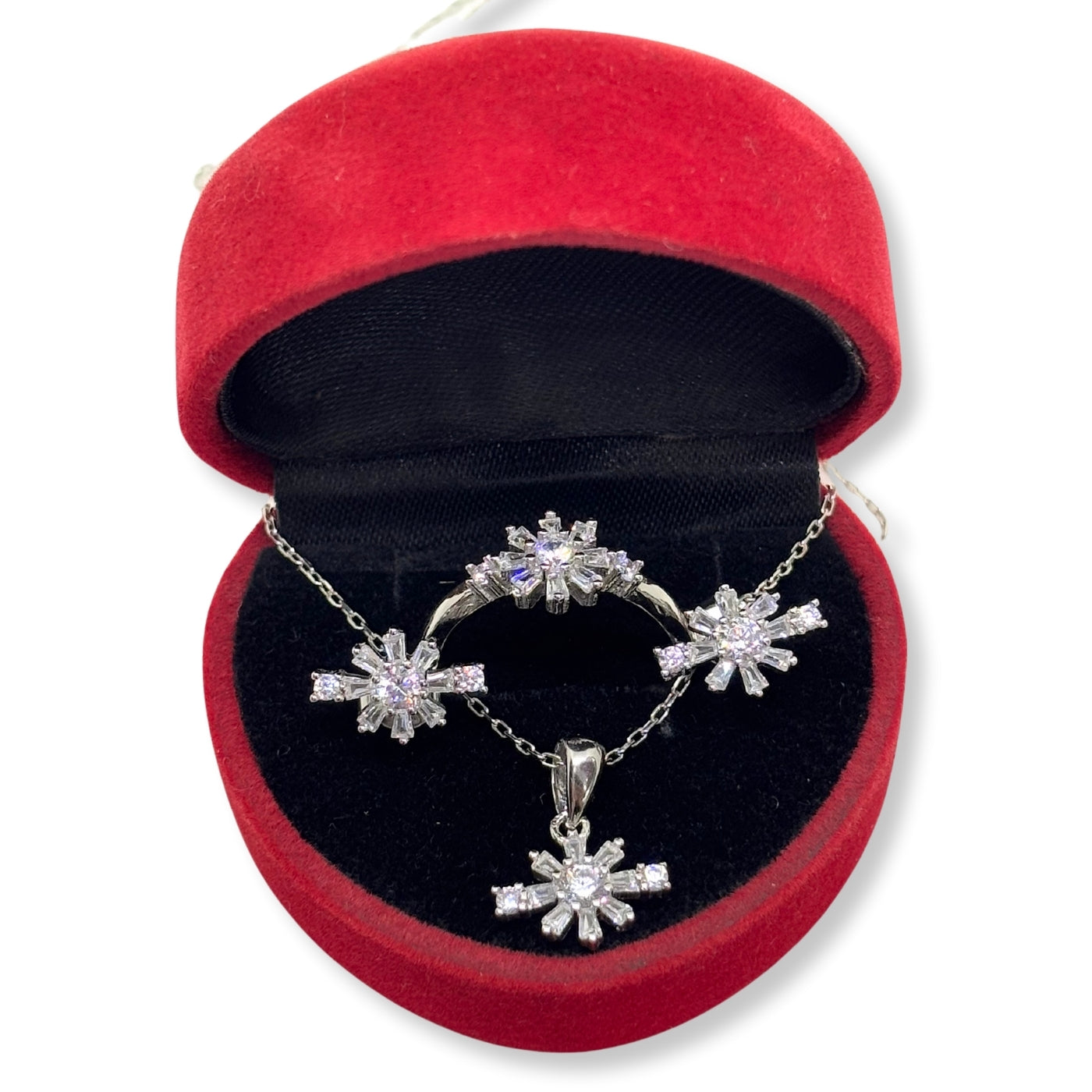 Işıltılı Kar Tanesi Gümüş Set&Takım
