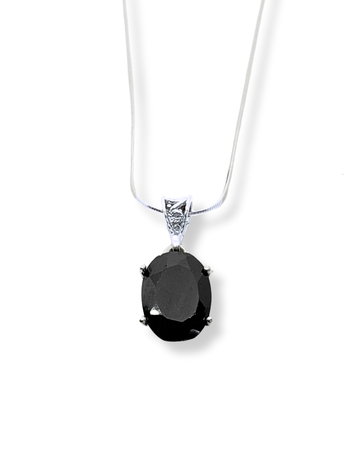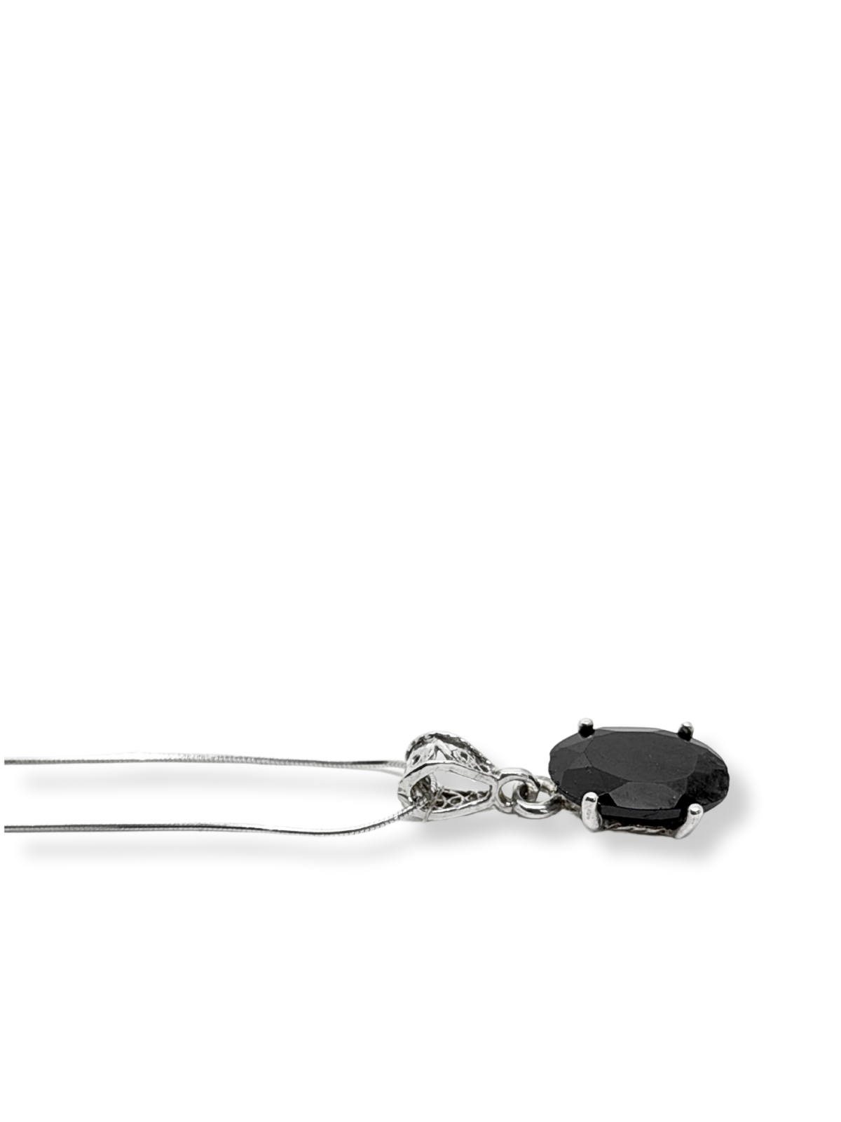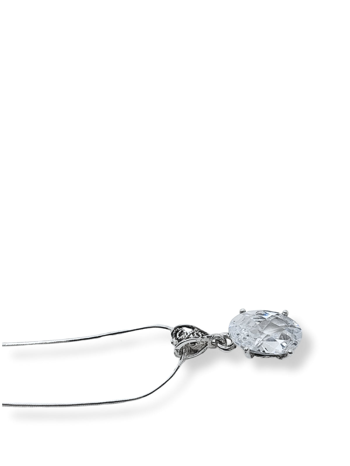 Oval Kesme Tektaş Işıltılı Gümüş Kadın Kolye