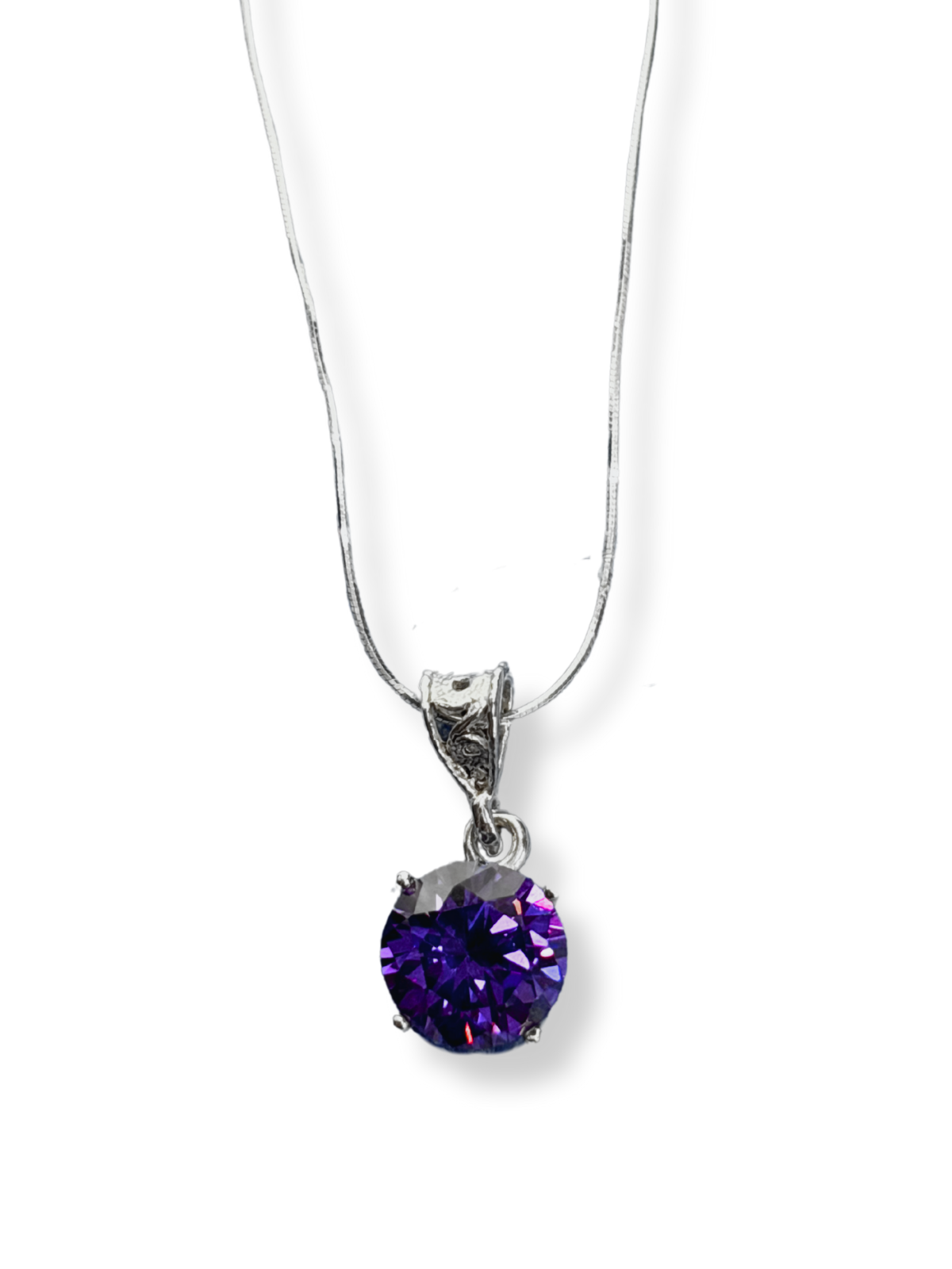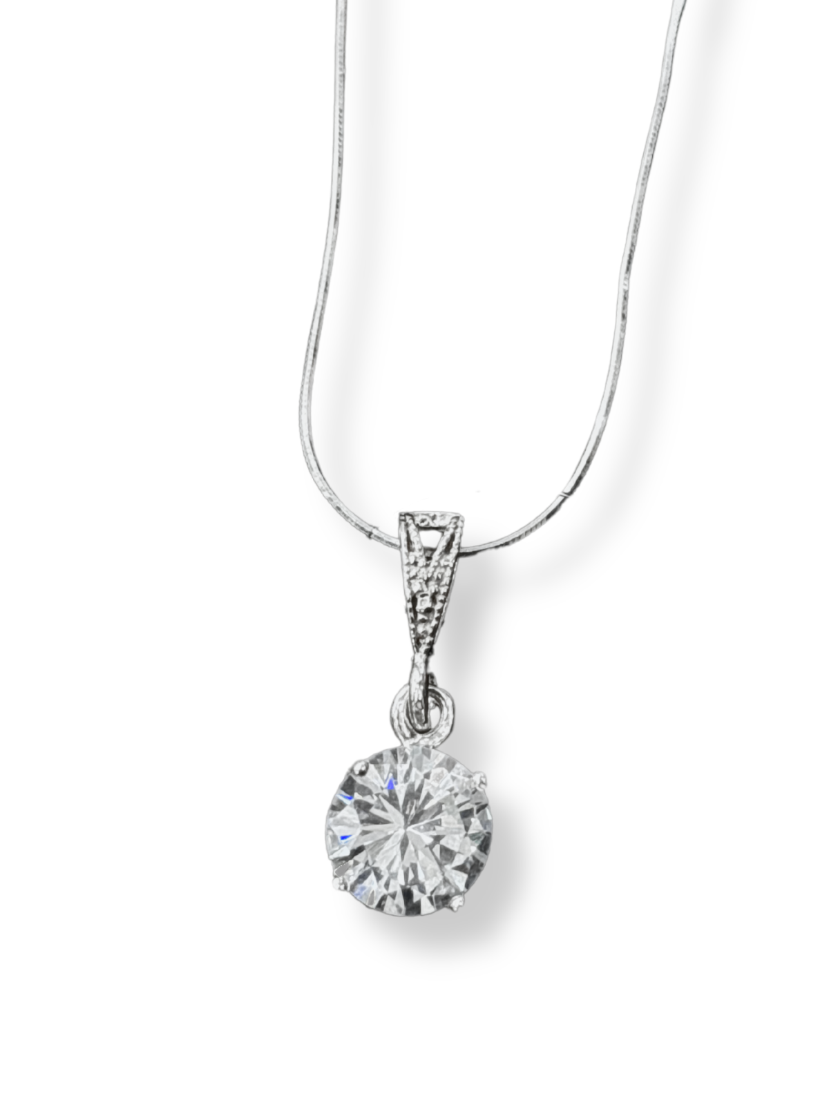 Yuvarlak Tırnaklı Tektaş Işıltılı Gümüş Kadın Kolye