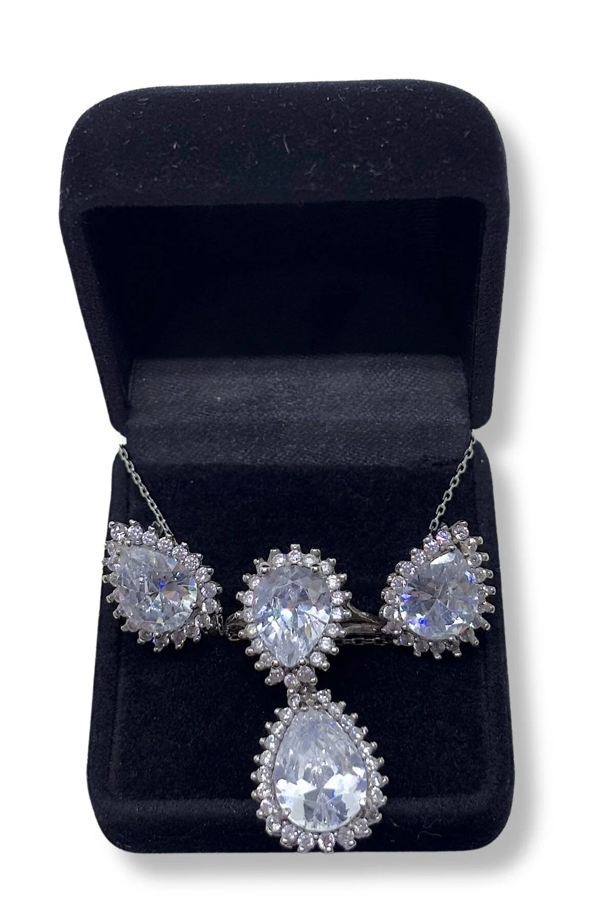 Büyük Damla Işıltılı Gümüş Set&Takım
