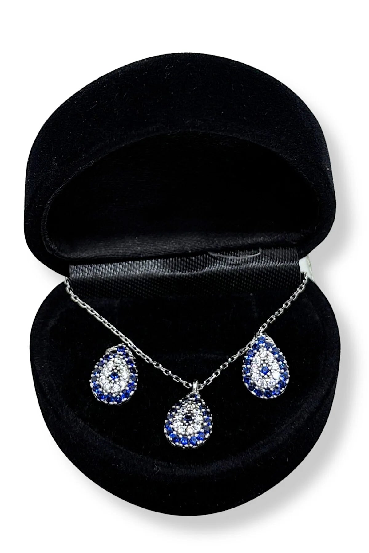 Işıltılı Damla Nazar Gümüş Set