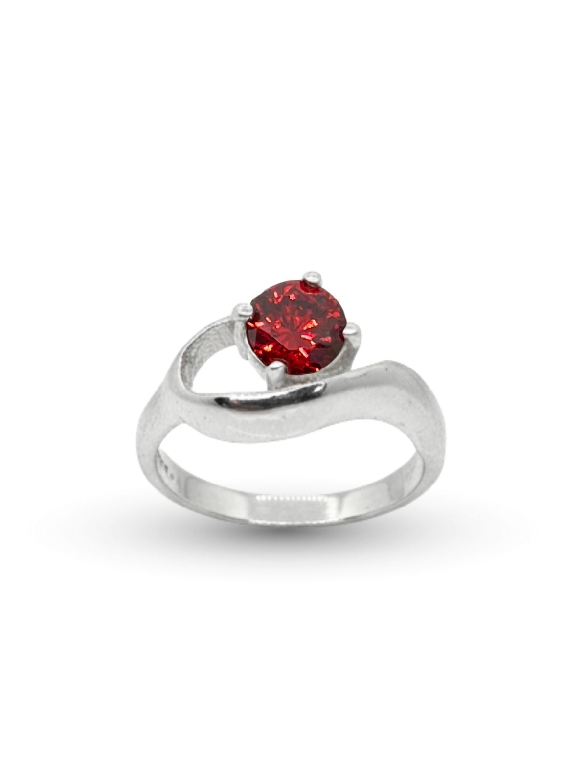 Tek Lal Taşlı Zarif Gümüş Kadın Yüzük