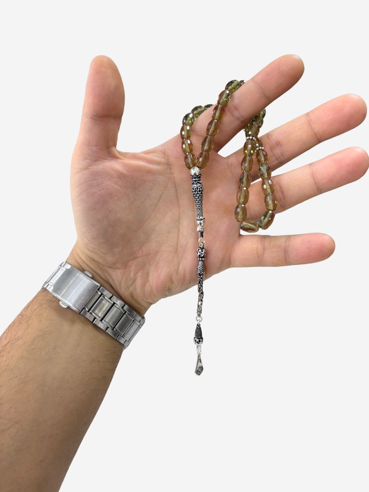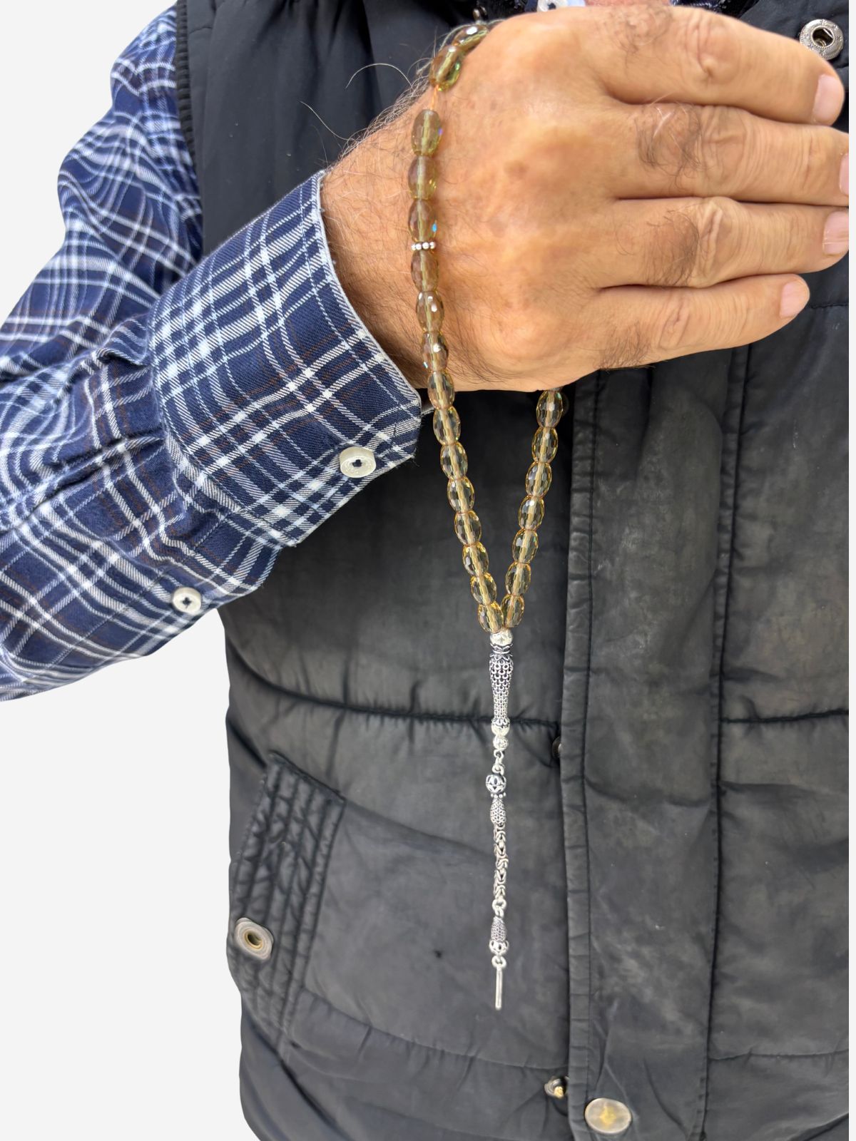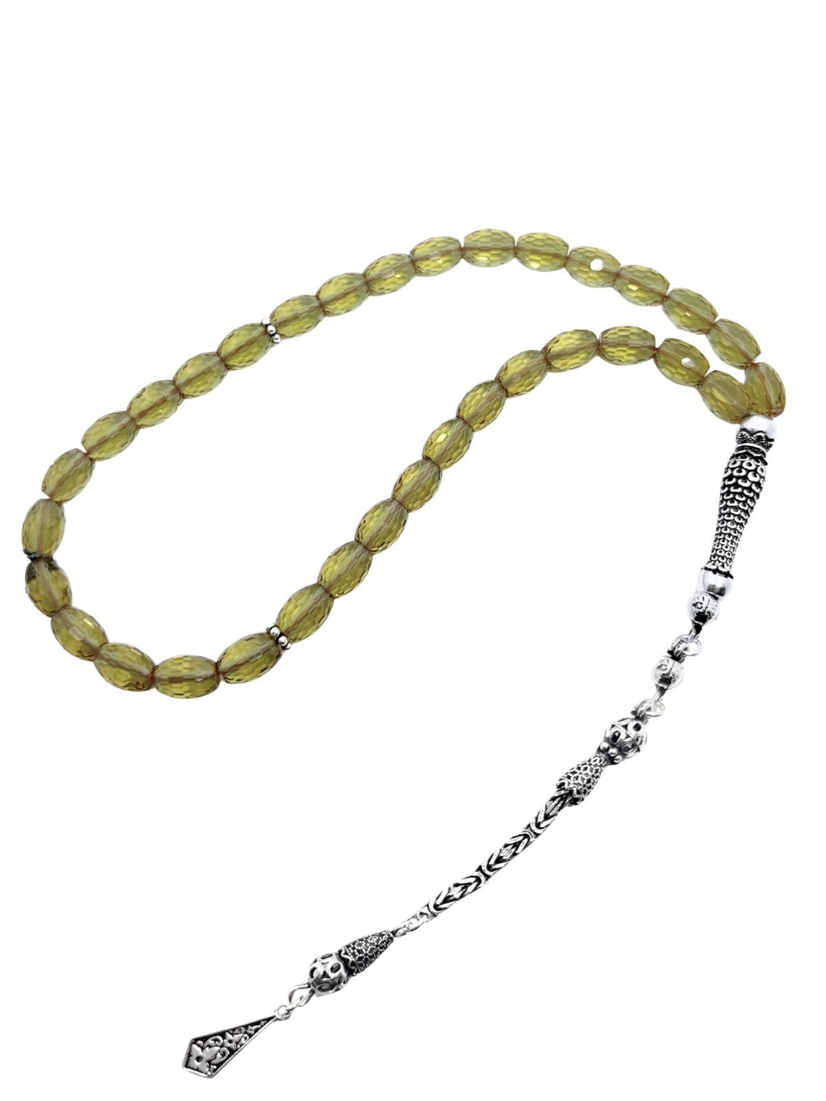 Fasetli Arpa Kesim Zultanit Tesbih Gümüş Püsküllü