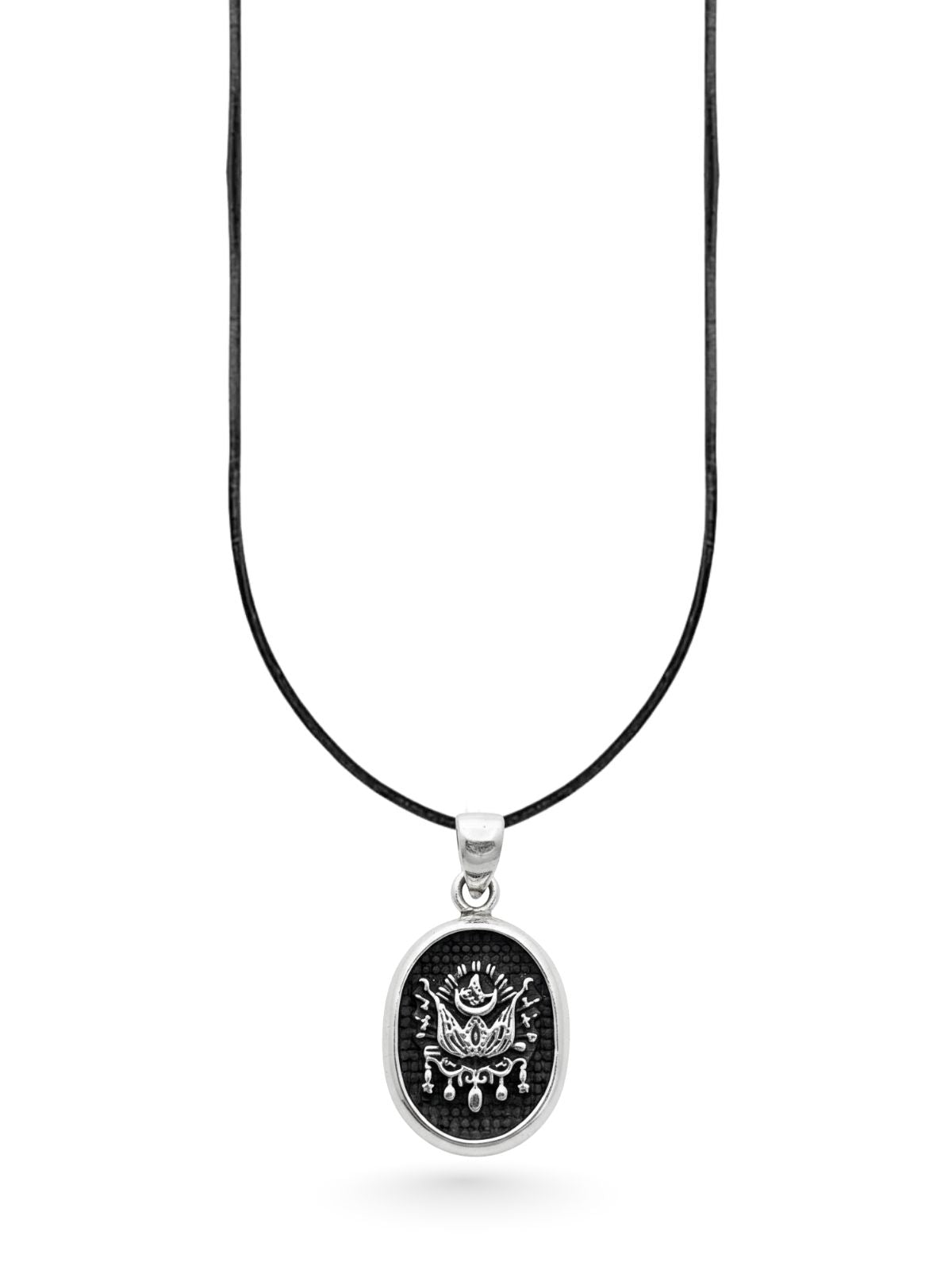 Osmanlı Armalı Siyah Zemin Gümüş Oval Kolye 3x1.7 cm [OYSY203]