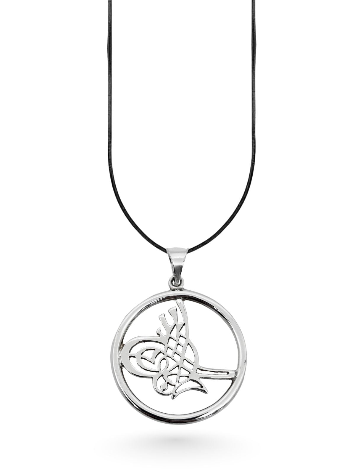 Osmanlı Tuğrası Motifli Yuvarlak Çerçeve Gümüş Kolye Ucu 4.4x3.4 cm [OYSY199]