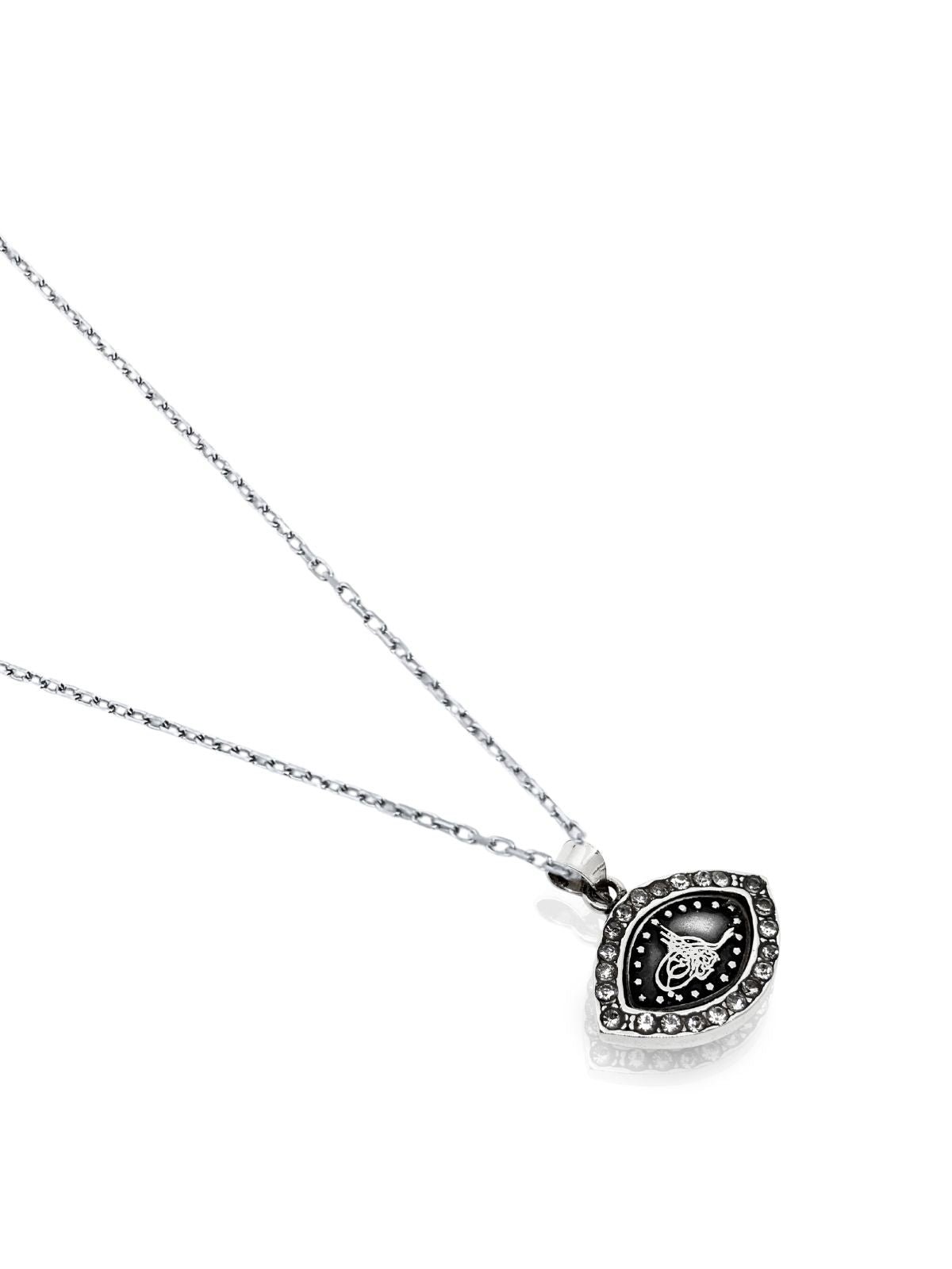Zirkon Taşlı Göz Formlu Osmanlı Tuğrası İşlemeli Gümüş Kolye 2.5x2.4 cm [OYSY206]