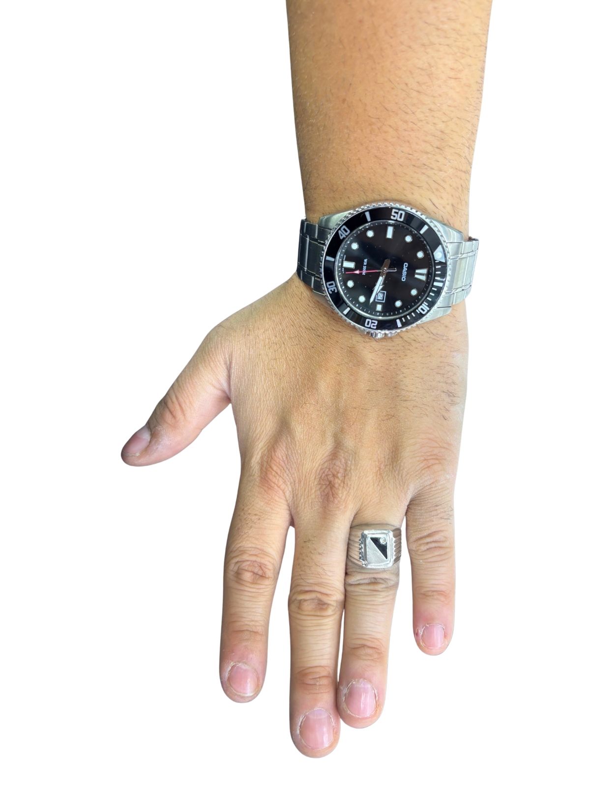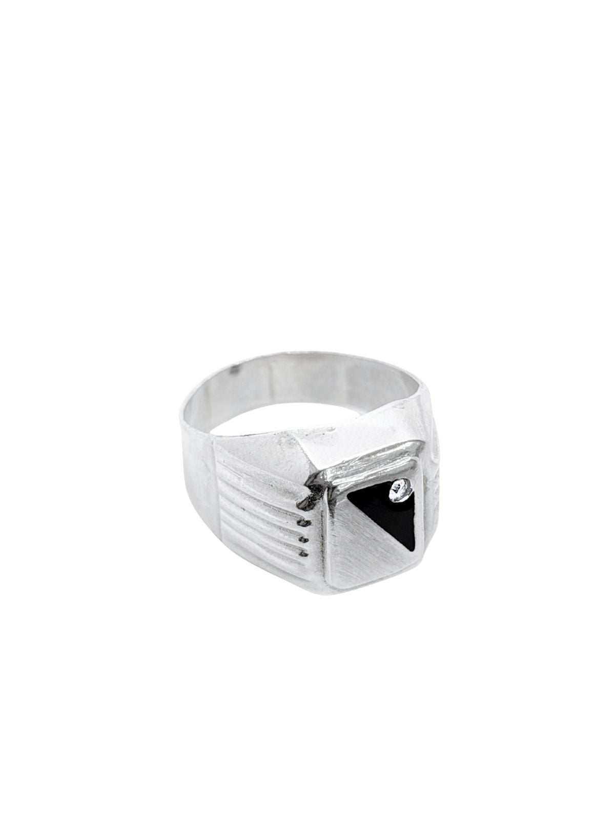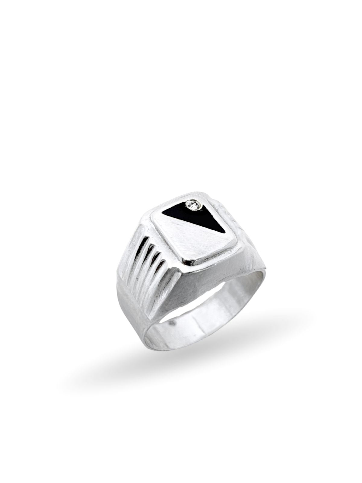 Dikdörtgen Mineli Zirkon Taş Detaylı Gümüş Erkek Yüzük