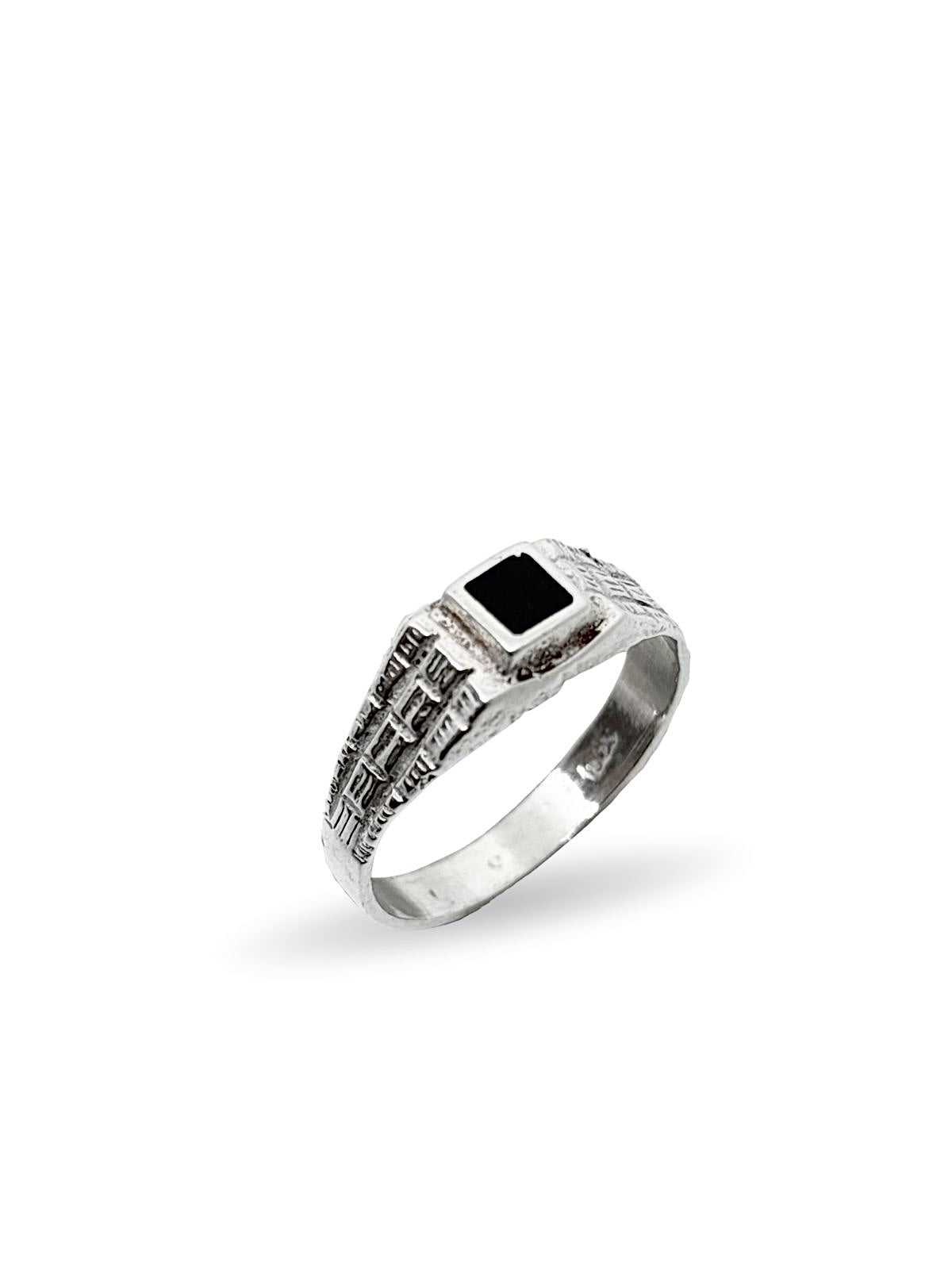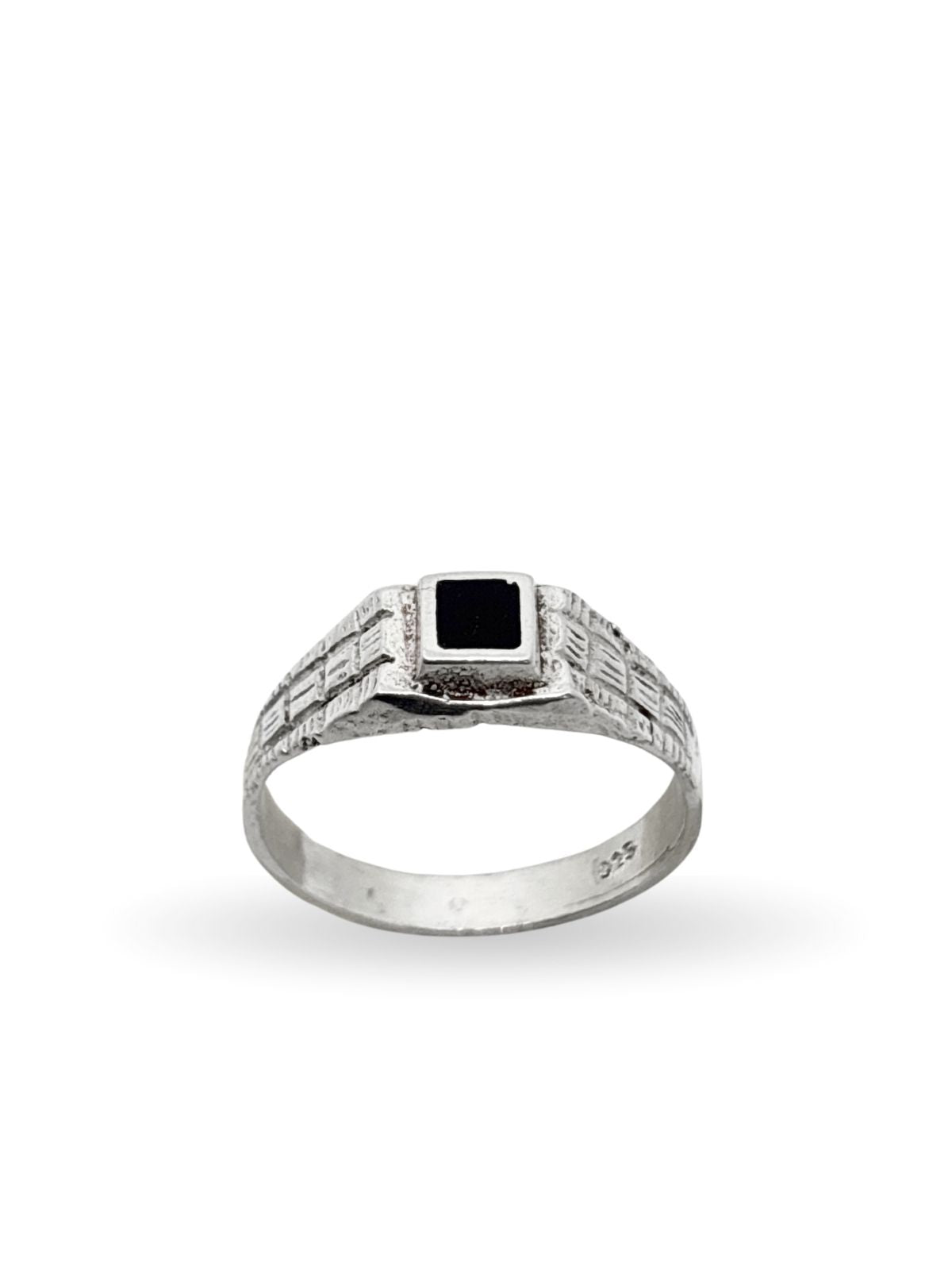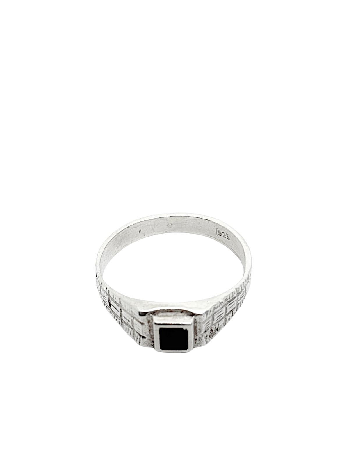 İnce Kare Mineli Retro Gümüş Erkek Yüzük