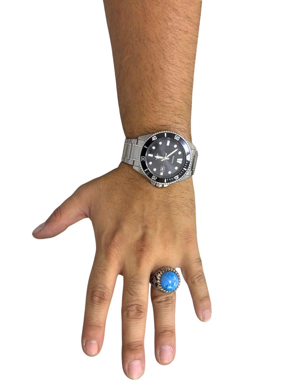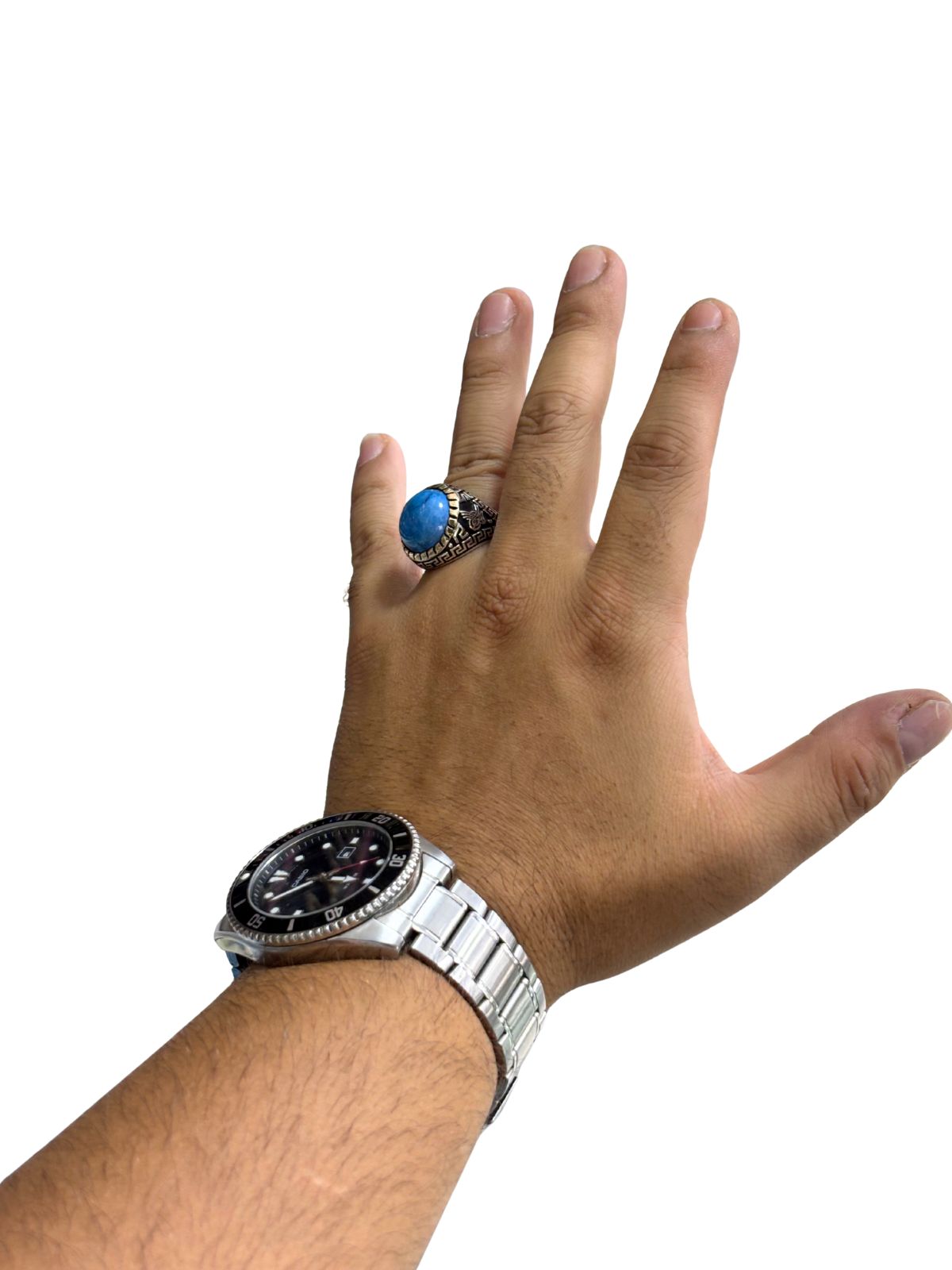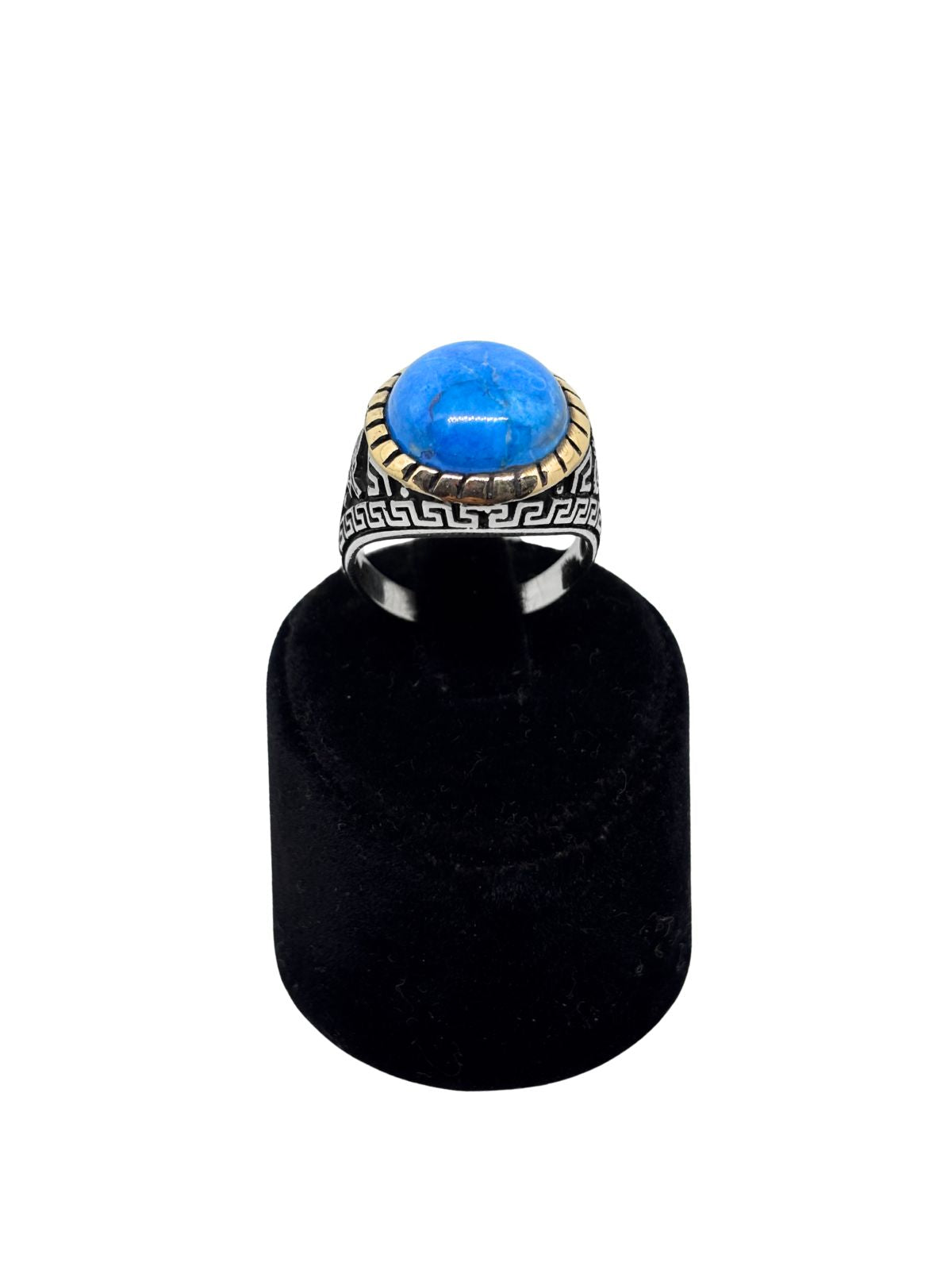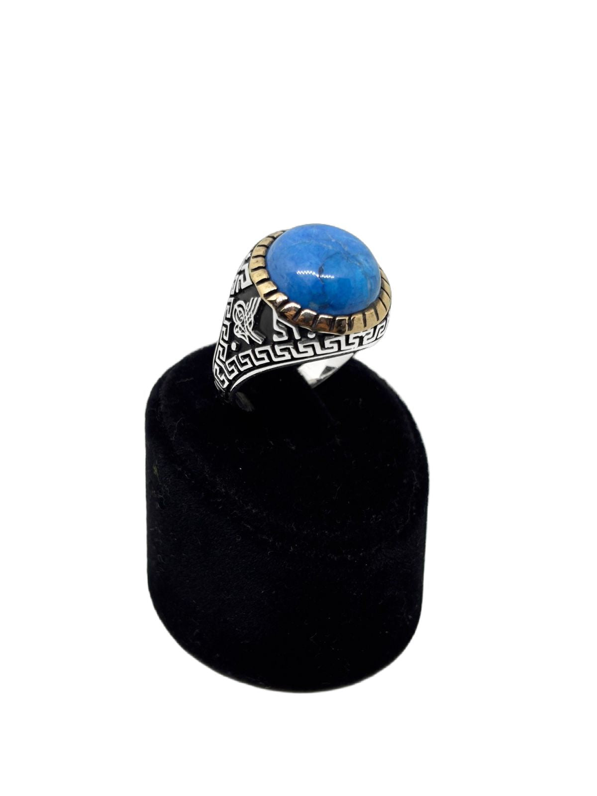İri Oval Mavi Firuze Taşlı Gümüş Erkek Yüzük
