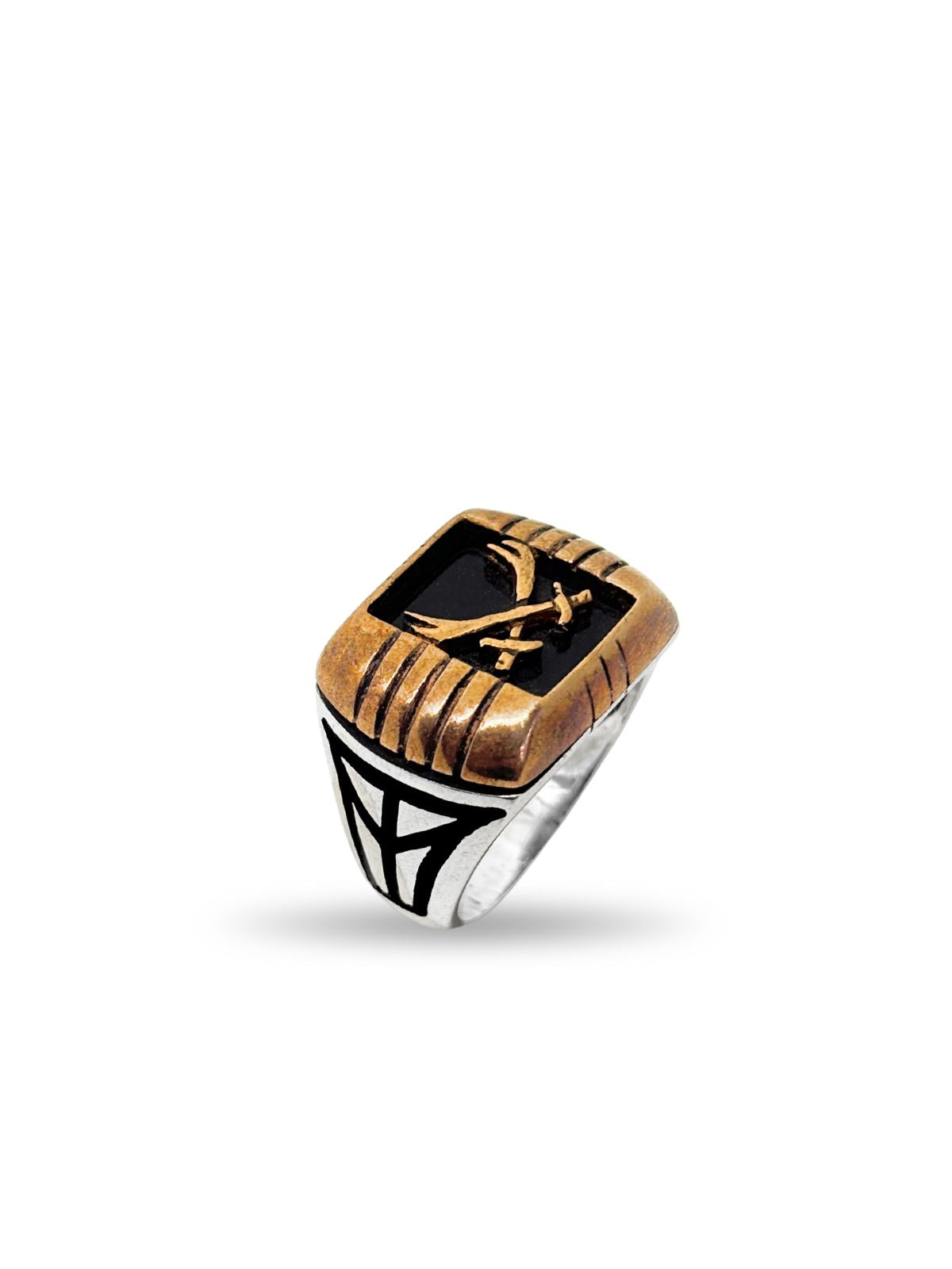Kalemli Hz. Ali Kılıcı Gümüş Retro Erkek Yüzük