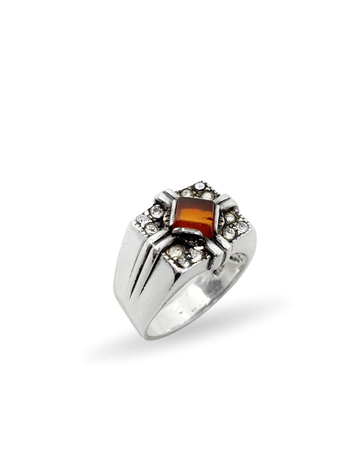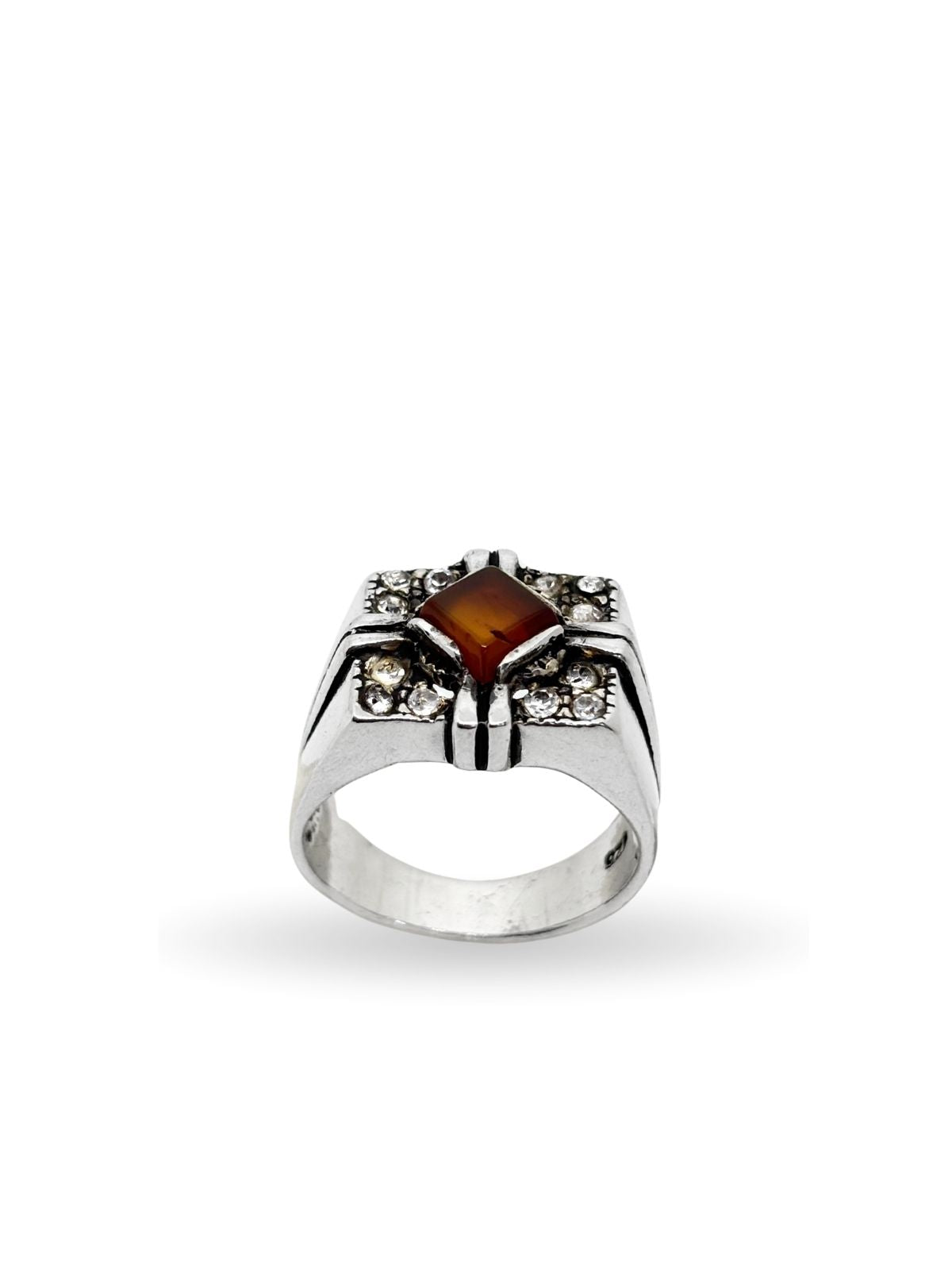 Kare Zirkon Taş Çevrili Kehribar Gümüş Erkek Yüzük