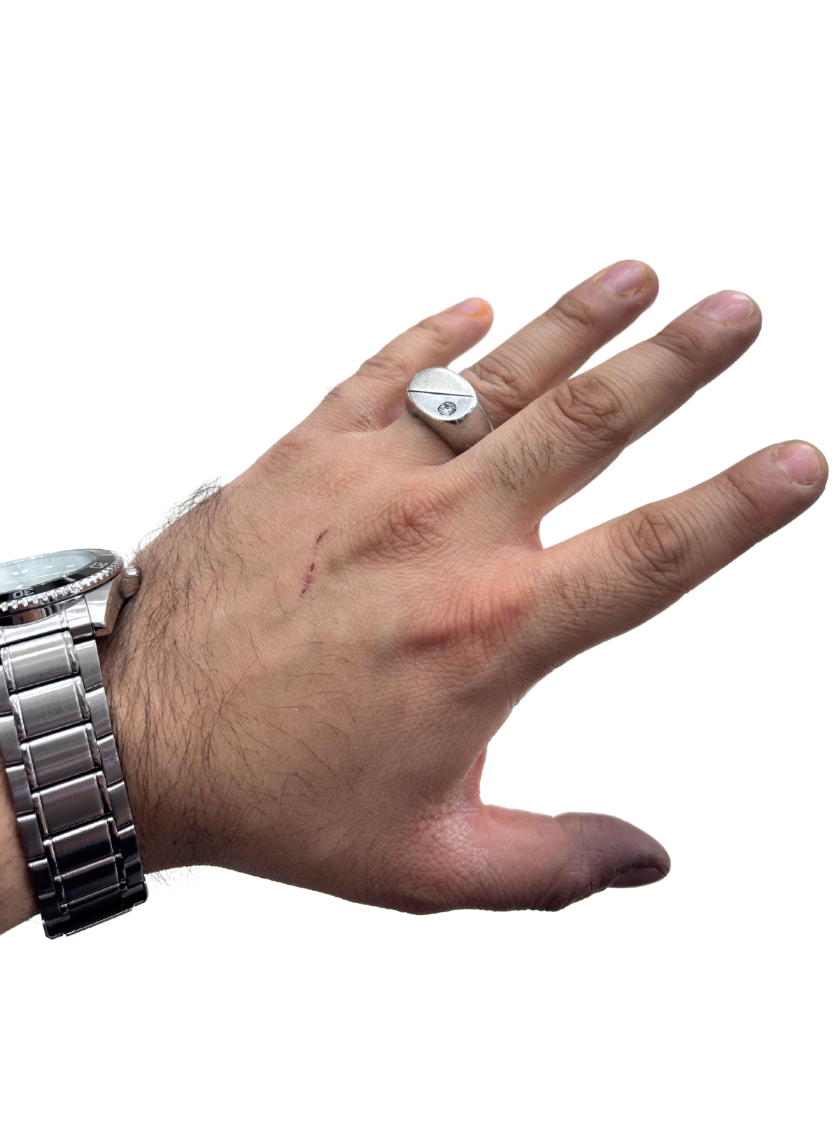 Kesit Gümüş Erkek Yüzük, 925 ayar gümüşten üretilmiş olup, sade ve modern çizgilere sahip oval formda düz yüzeyiyle dikkat çeker. Sol üst ön kısmında yer alan tek beyaz taş detayı, tasarıma zarif bir ışıltı katar. Minimalist yapısına rağmen seçkin bir duruş sunan bu model, güçlü bir karakterin sade ama etkili yansımasıdır.