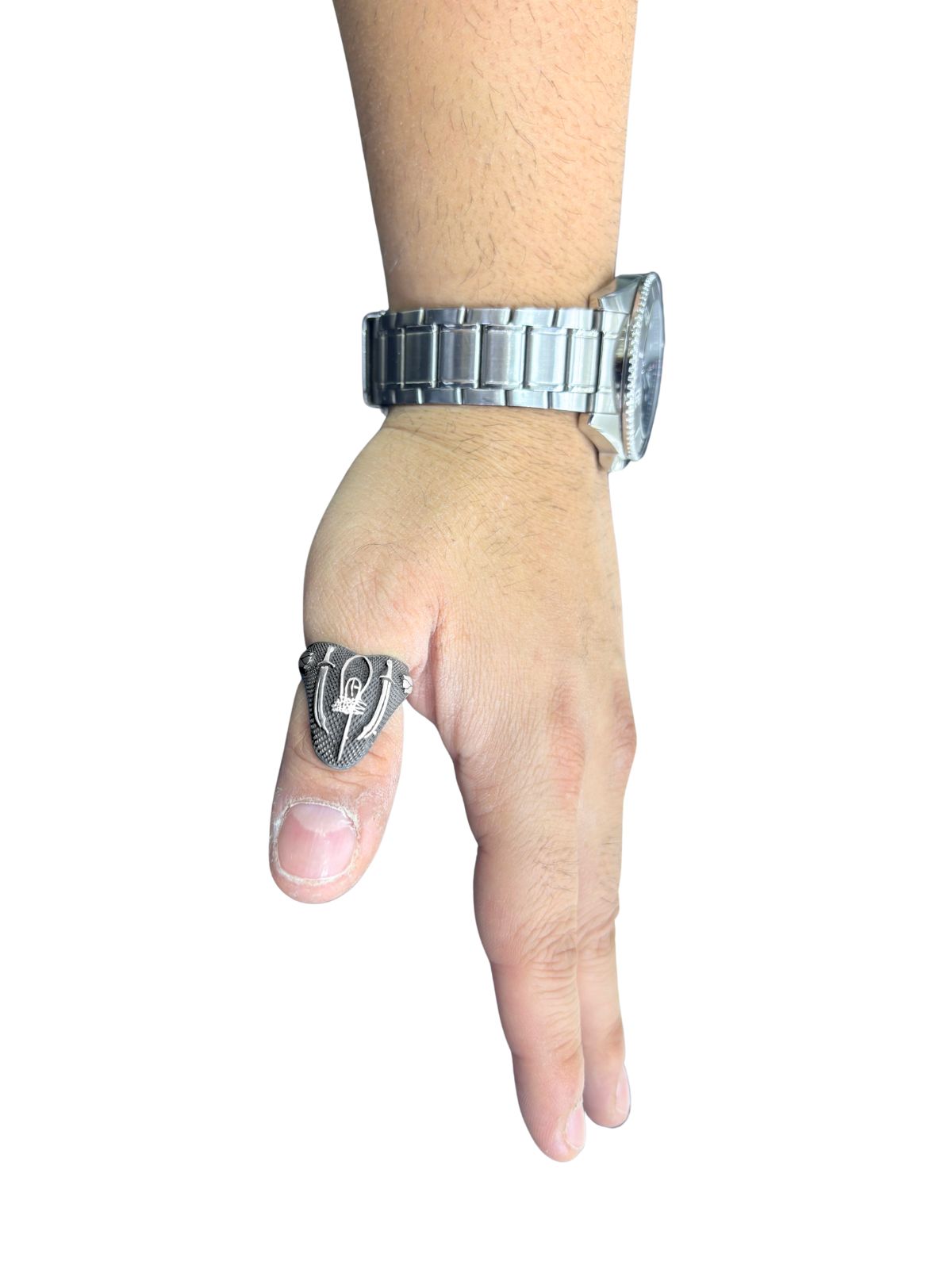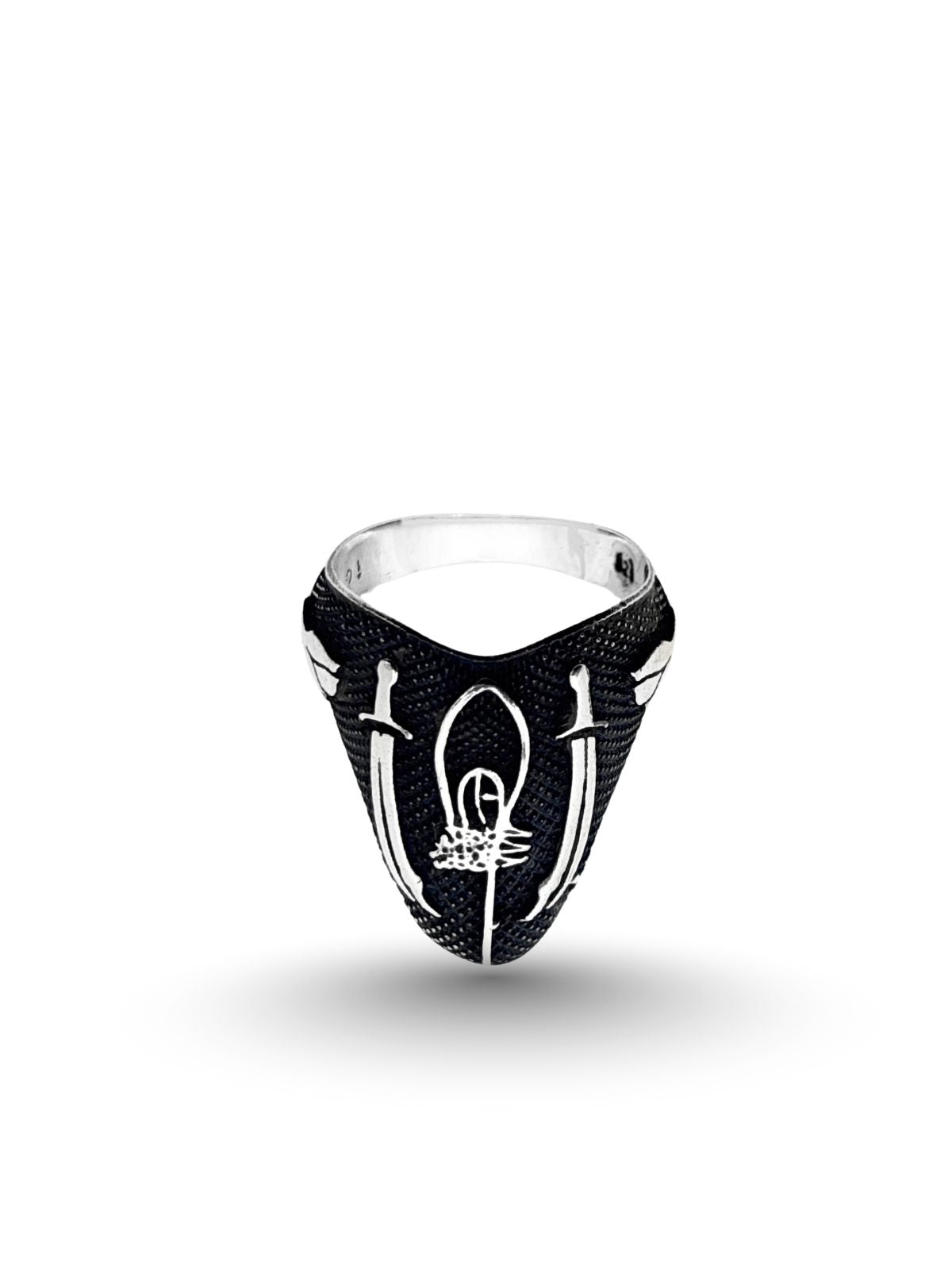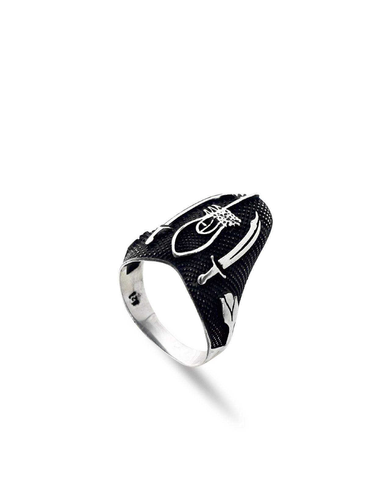 Kılıç Motifli Zihgir Gümüş Erkek Okçu Yüzüğü