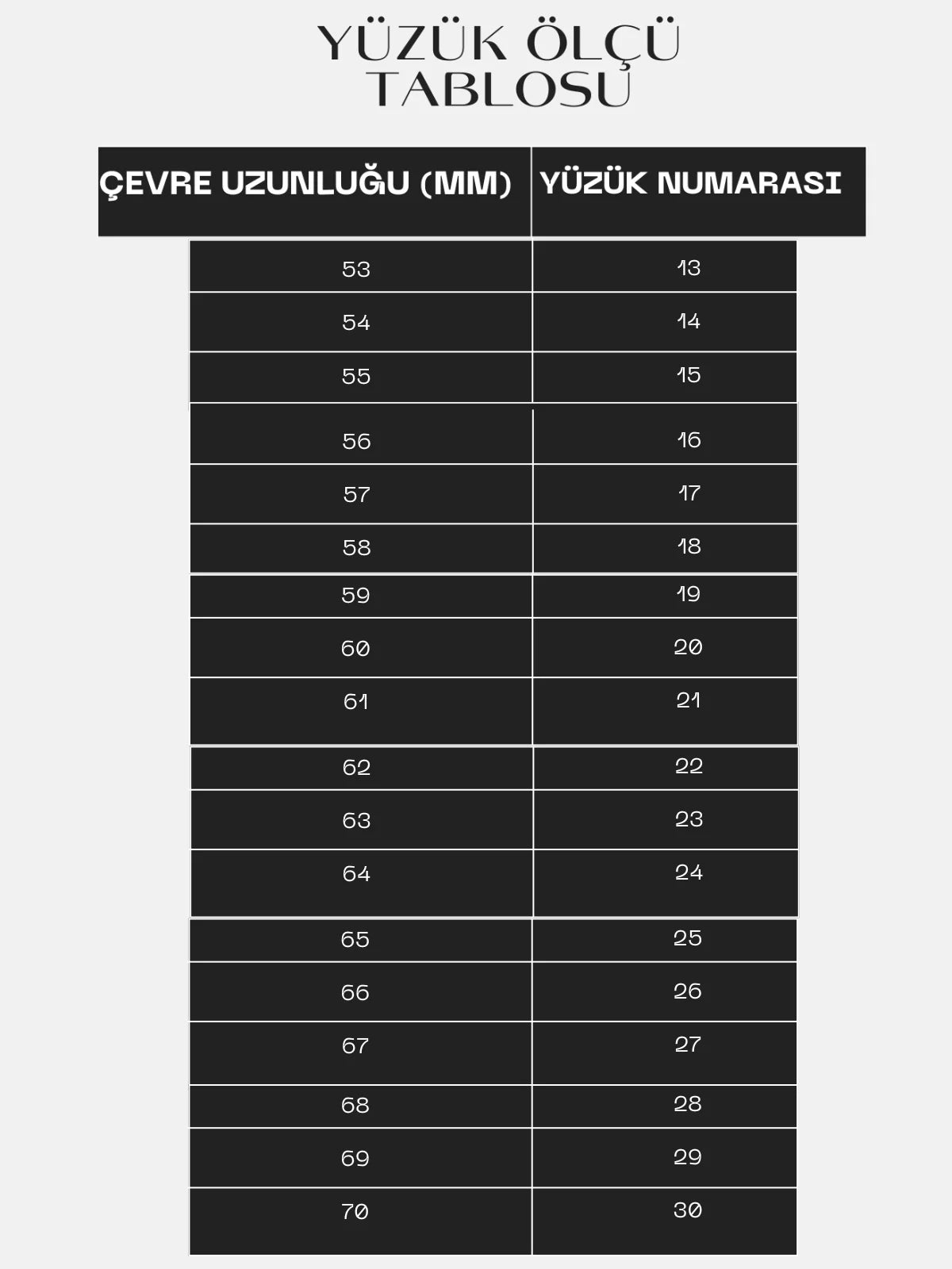 Yüzük Ölçü Tablosu İçin Tıklayınız.
