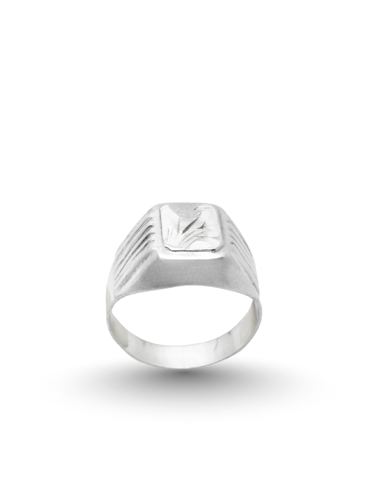 Lazer İşlemeli Gümüş Erkek Yüzük