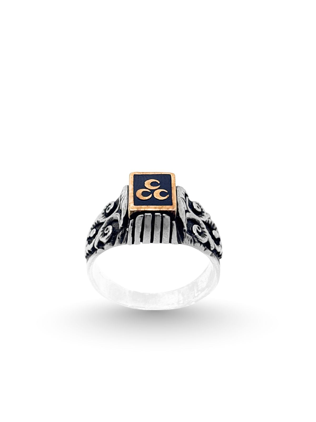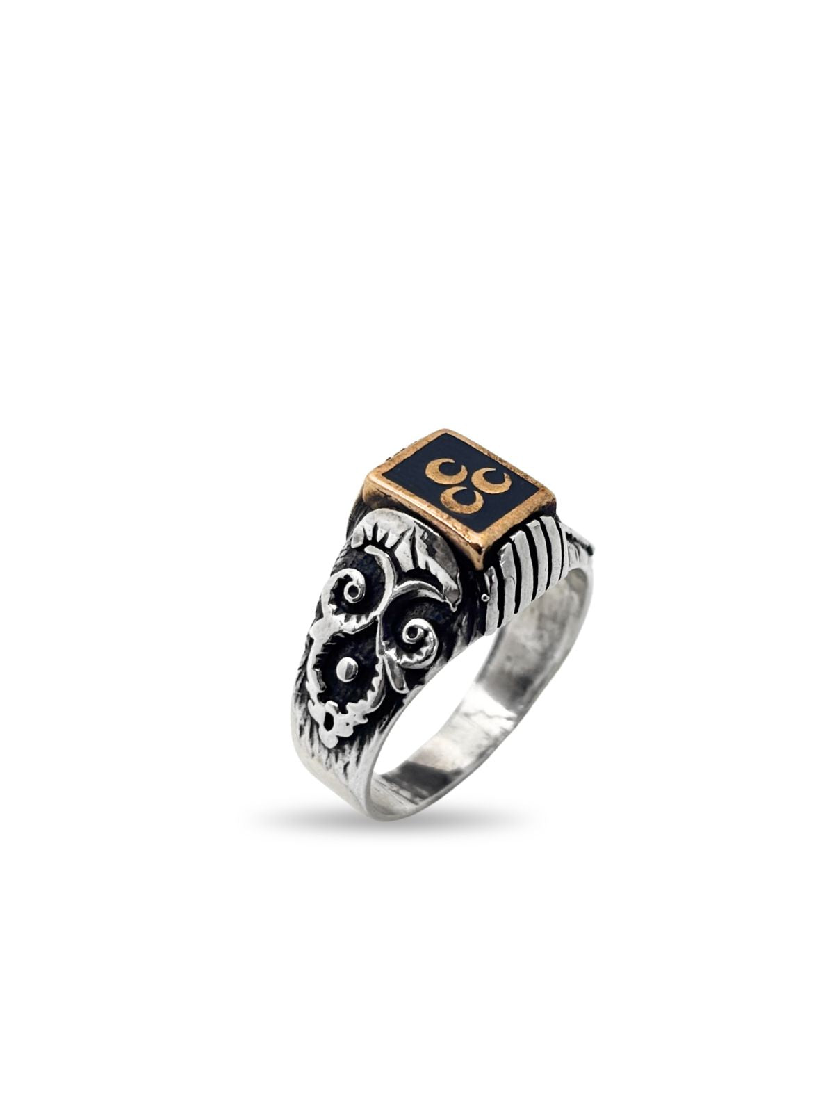 Mineli Dikdörtgen Üç Hilal Gümüş Erkek Yüzük