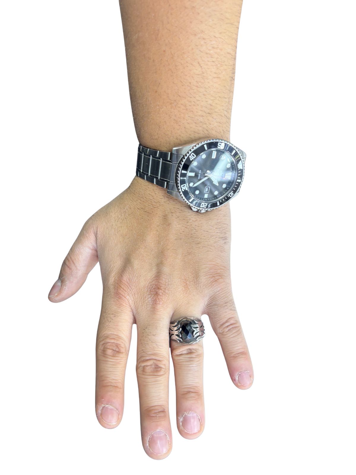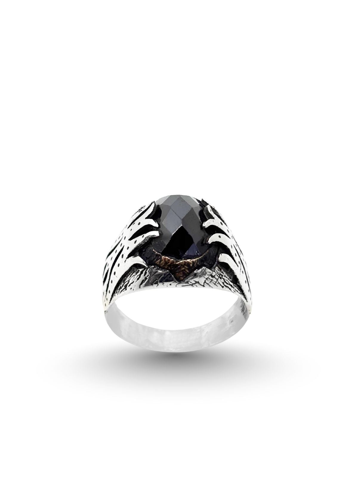 Oval Kesme Oniks Taşlı Gümüş Erkek Yüzük RXY7-GE49