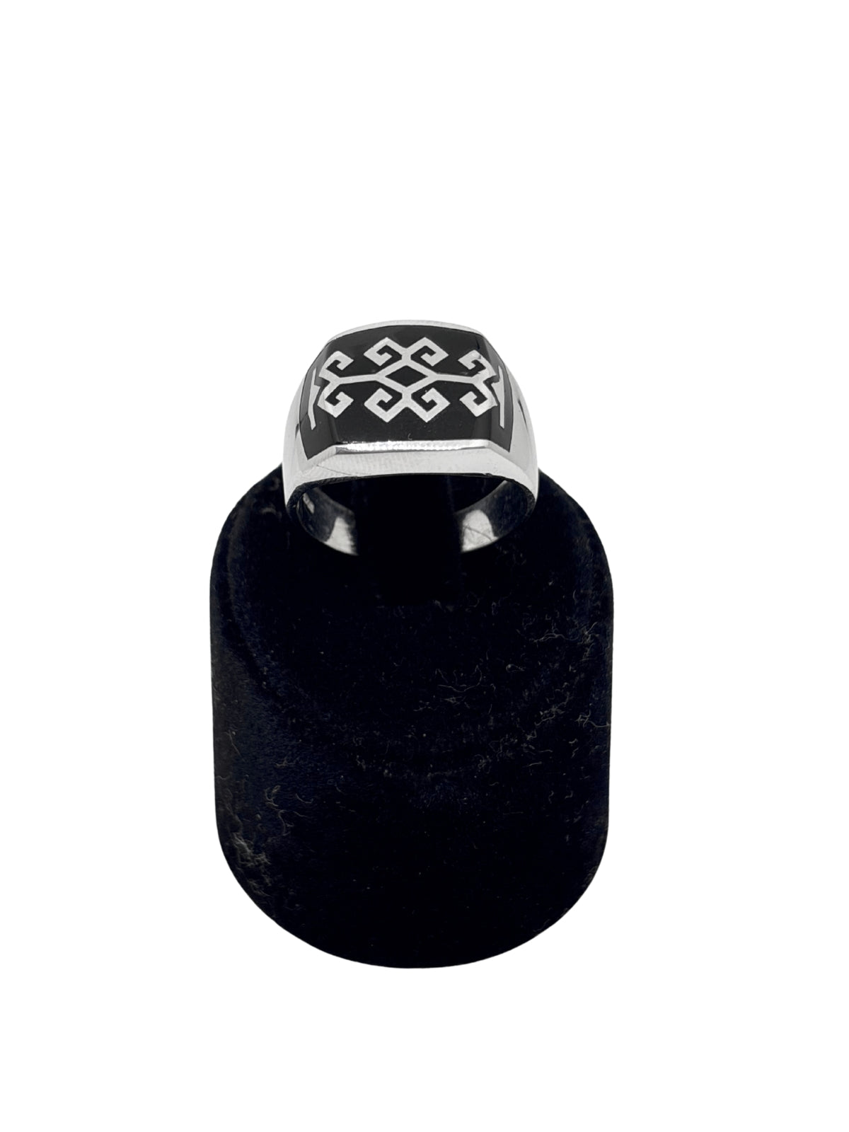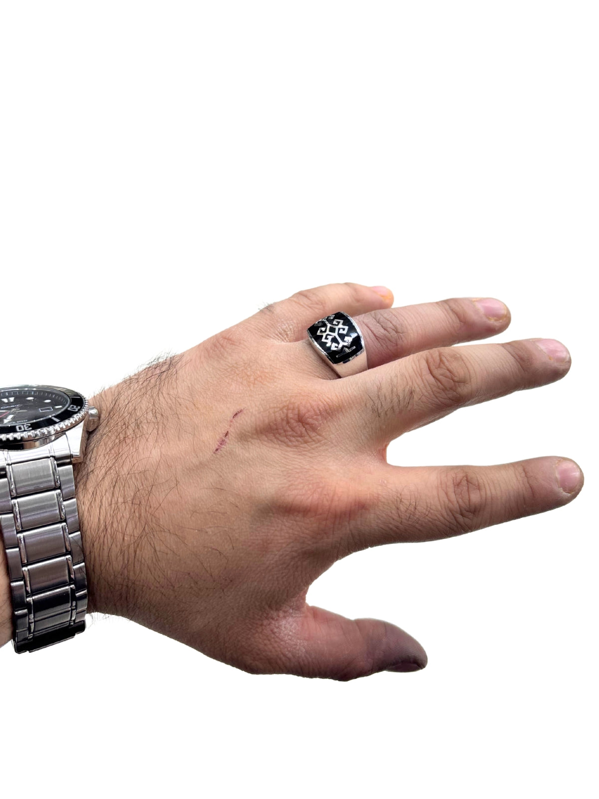 Siyah Mineli Desenli Gümüş Erkek Yüzük