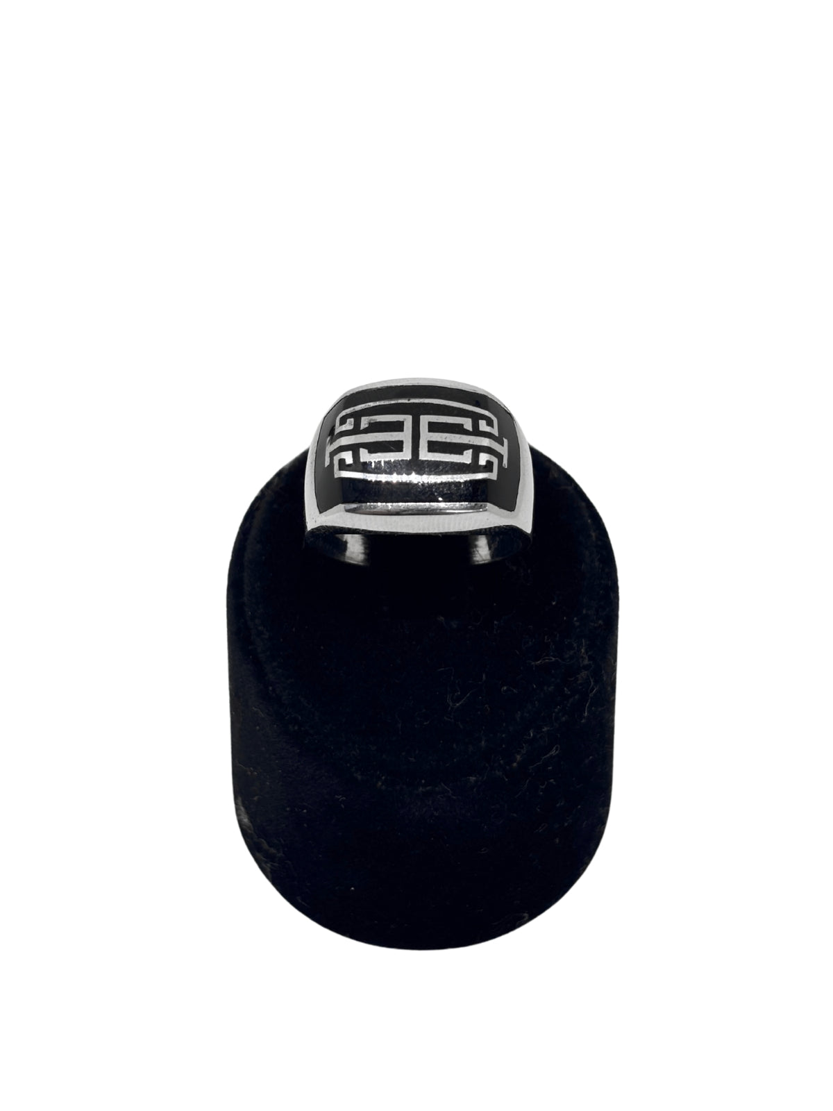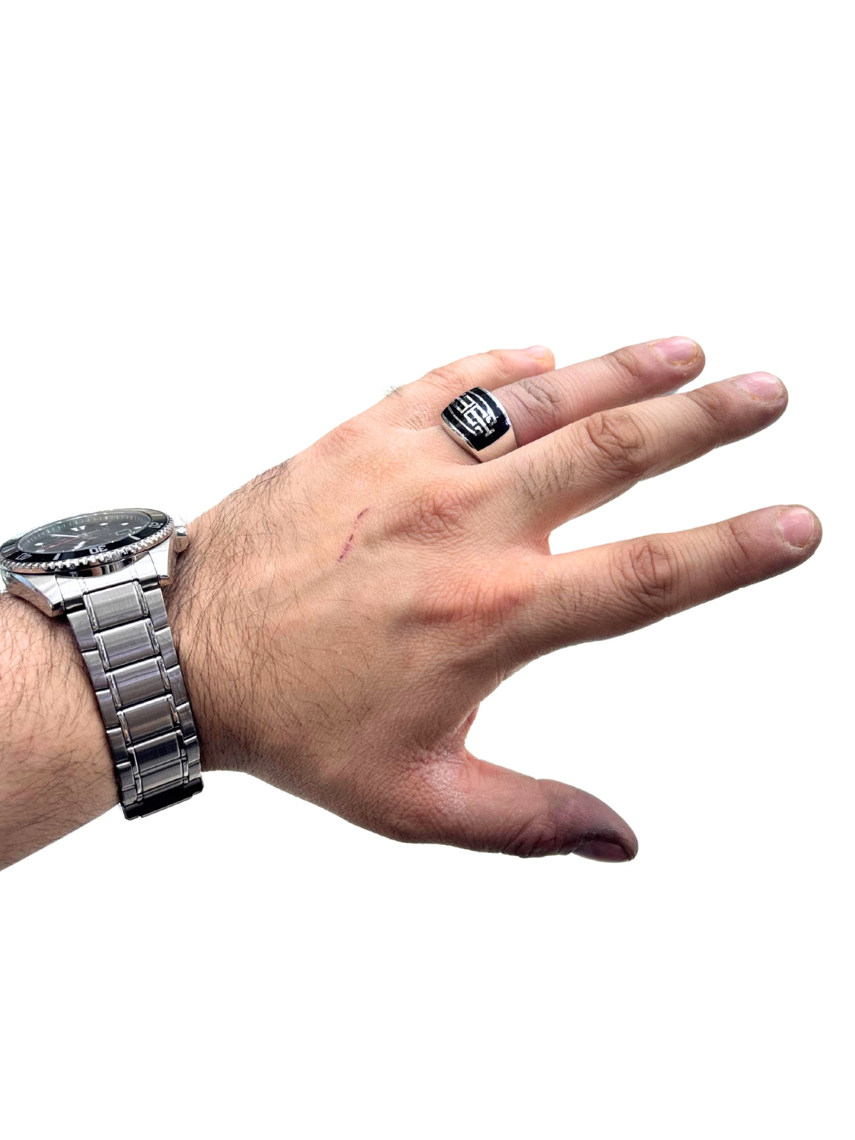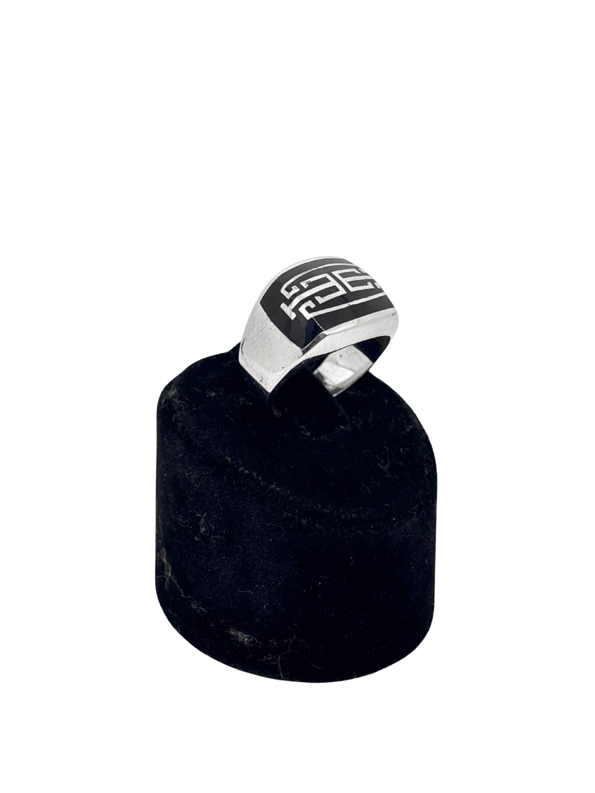 Siyah Mineli Desenli Gümüş Erkek Yüzük