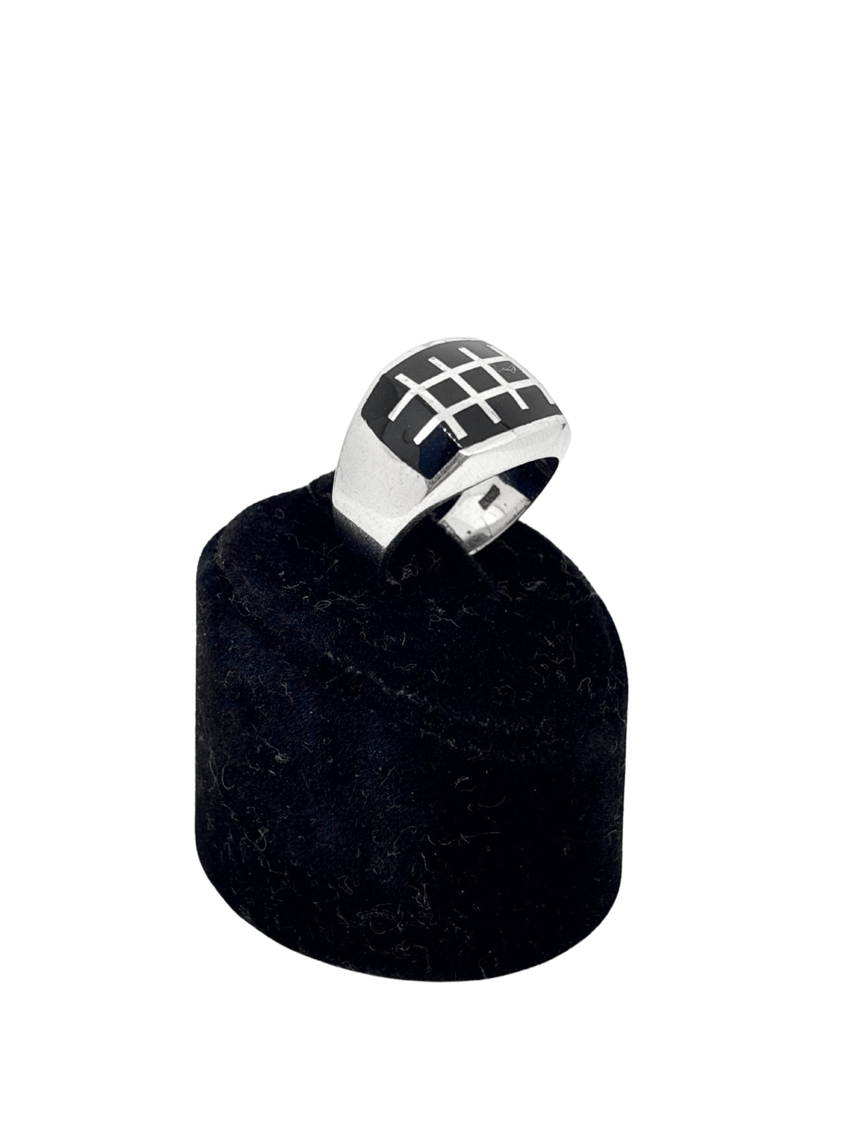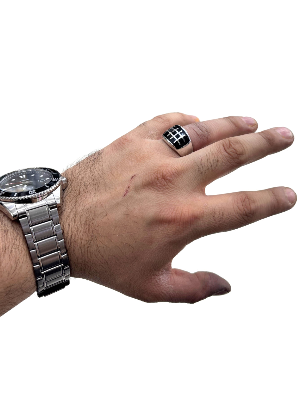 Siyah Mineli Desenli Gümüş Erkek Yüzük
