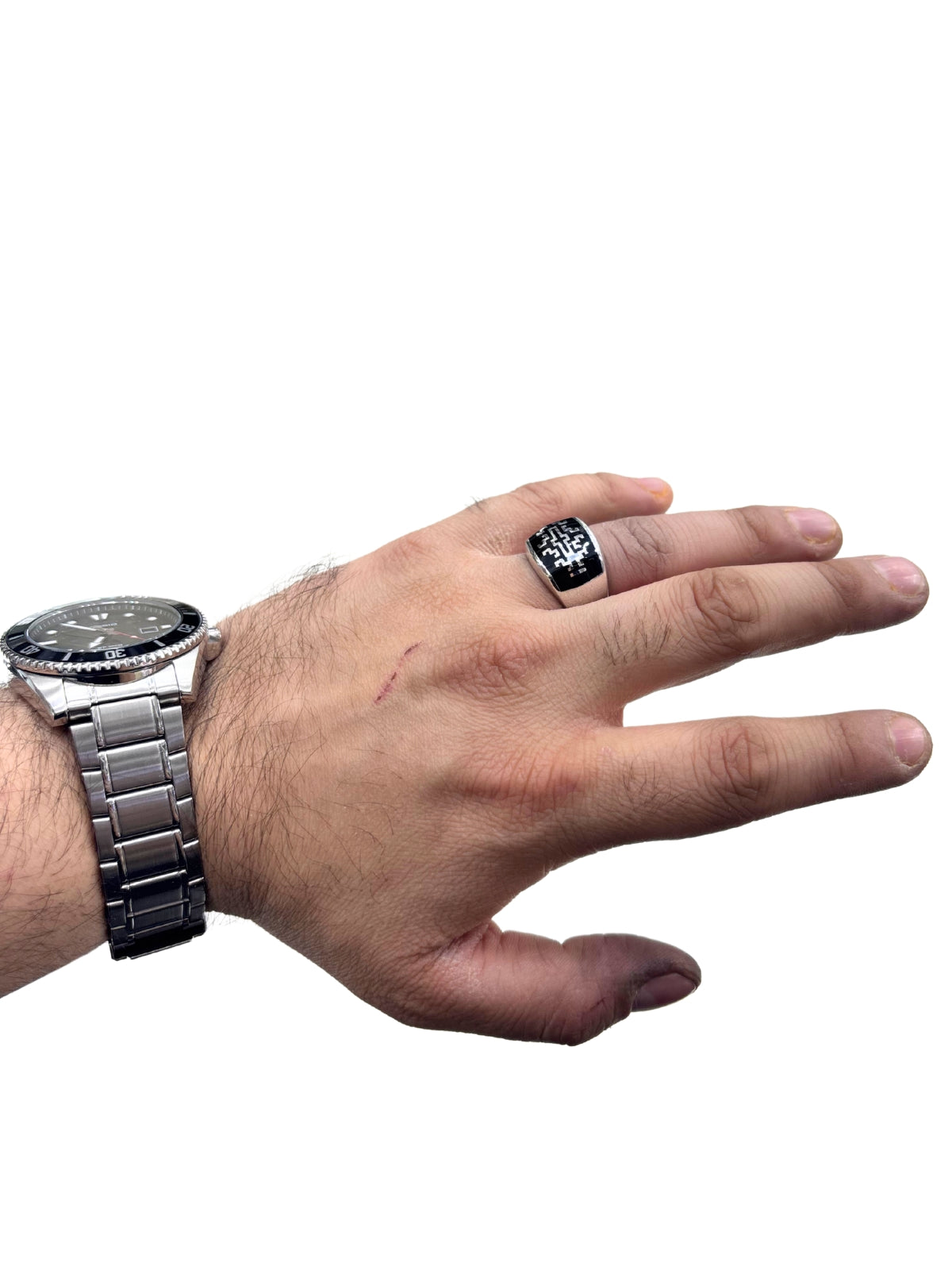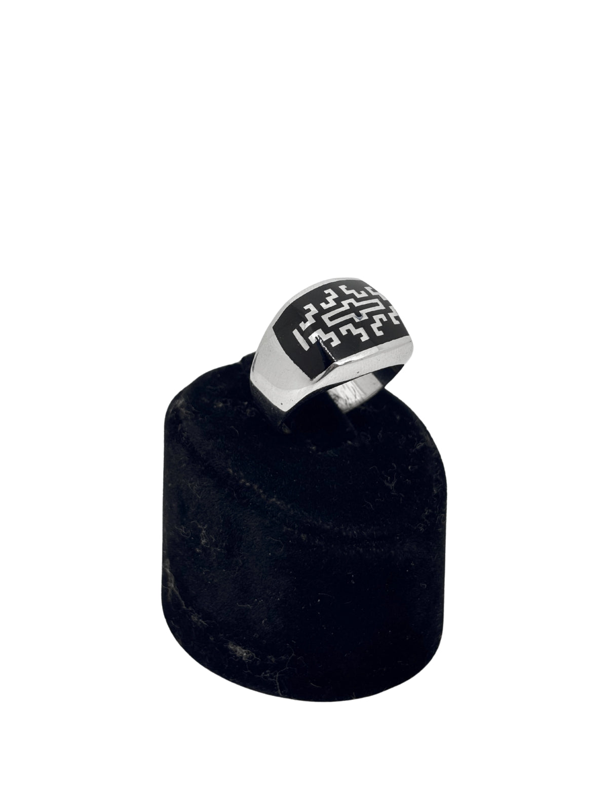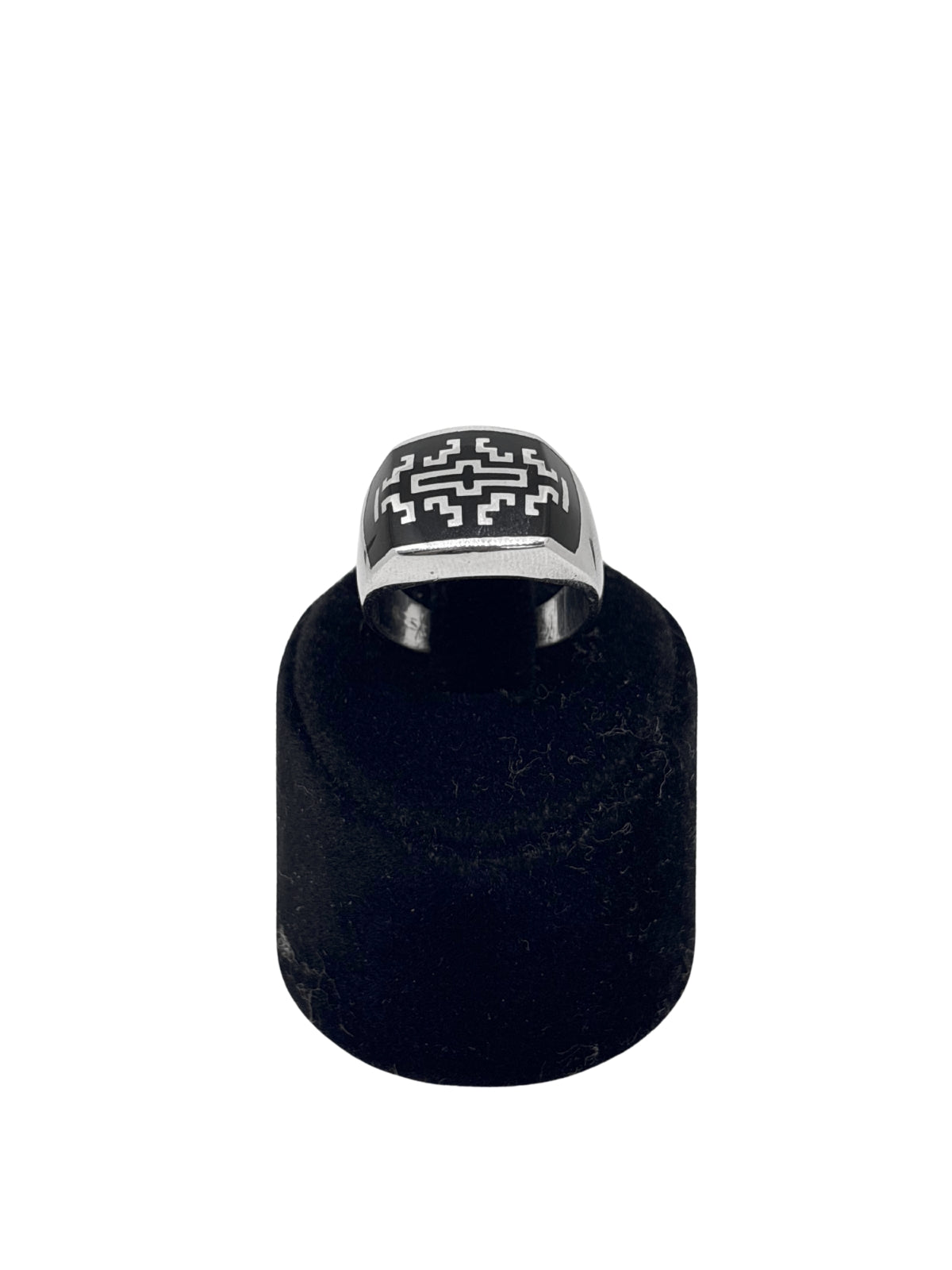 Siyah Mineli Desenli Gümüş Erkek Yüzük