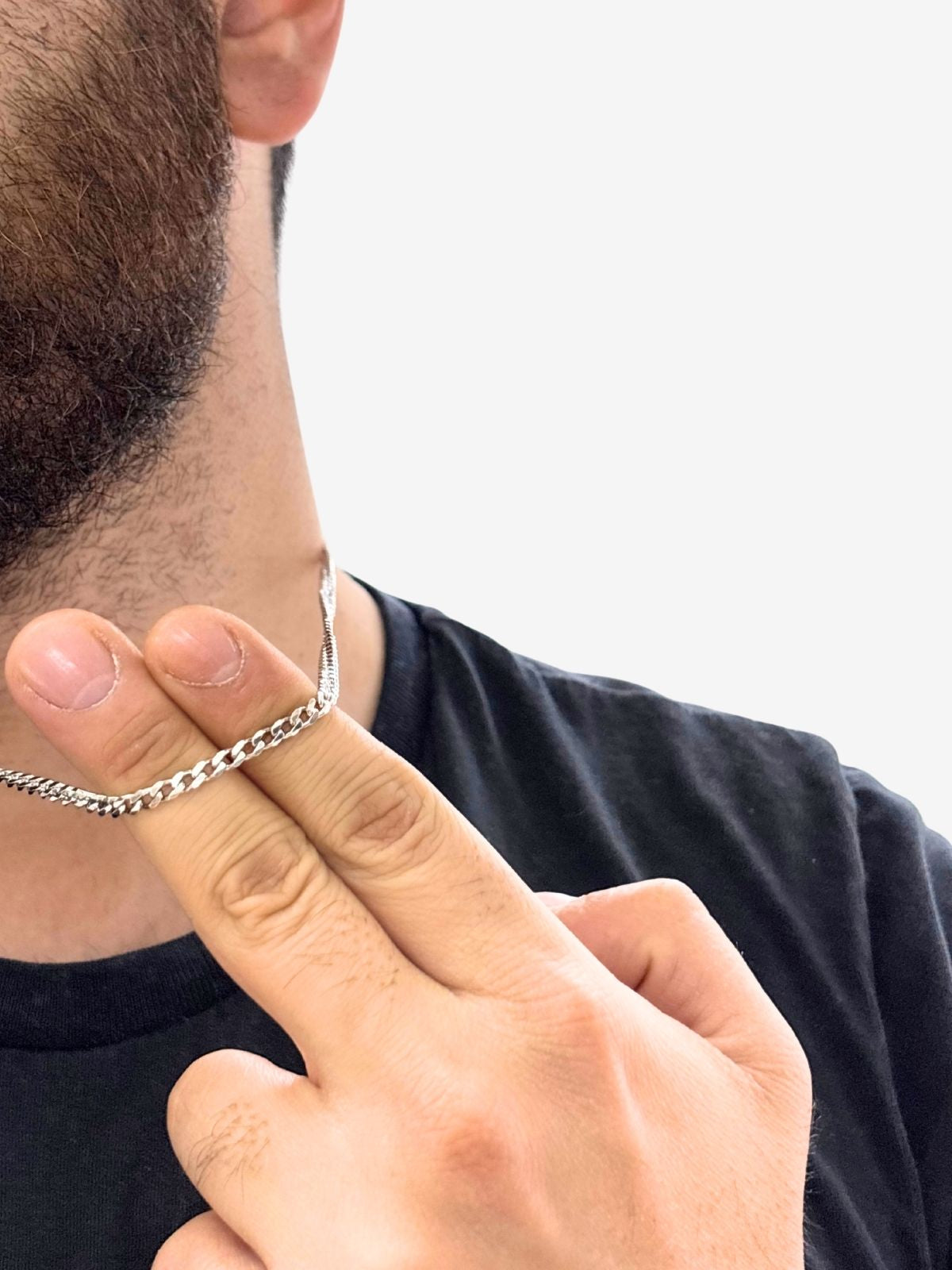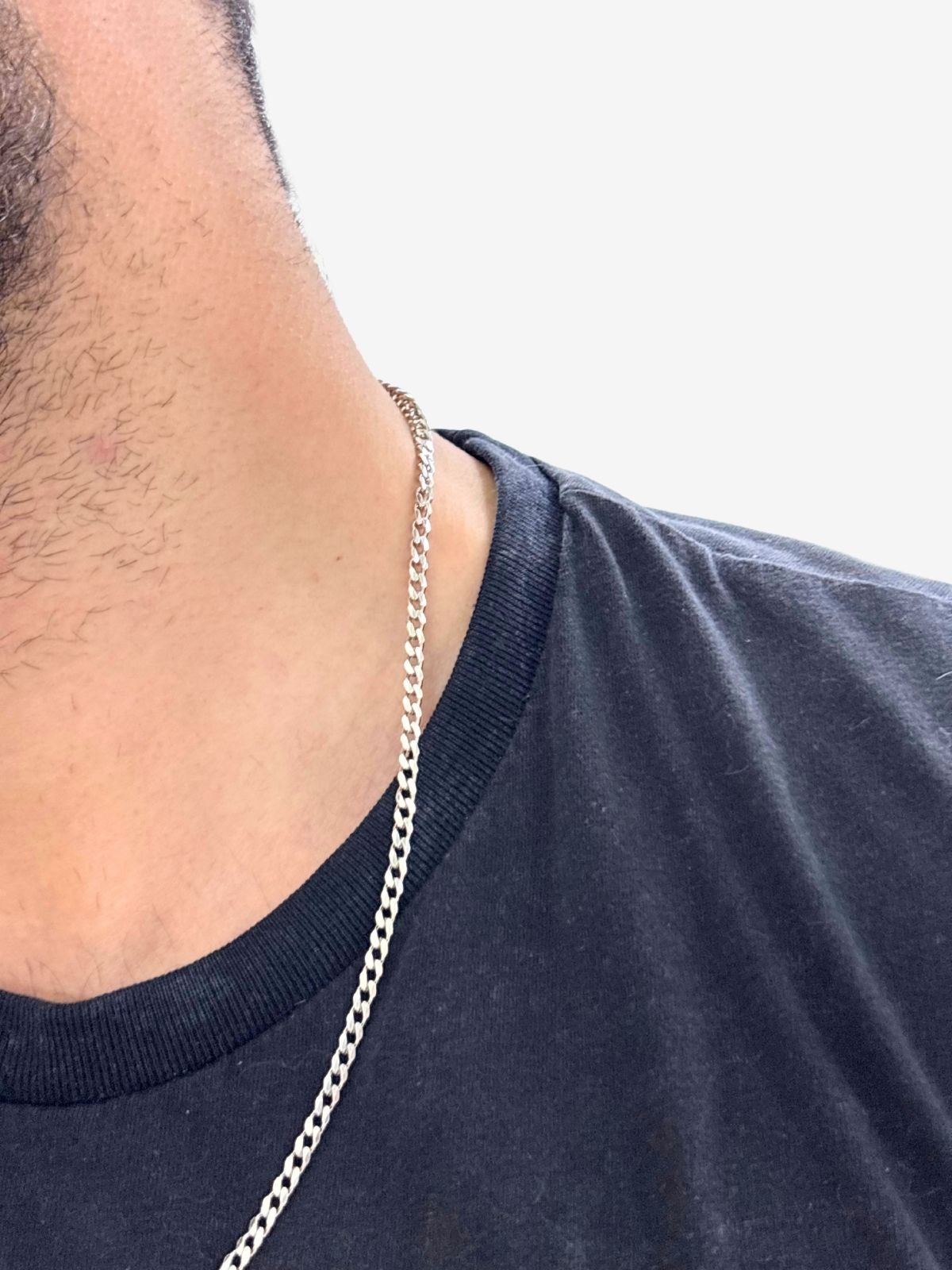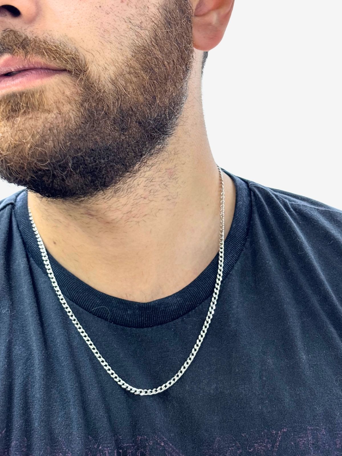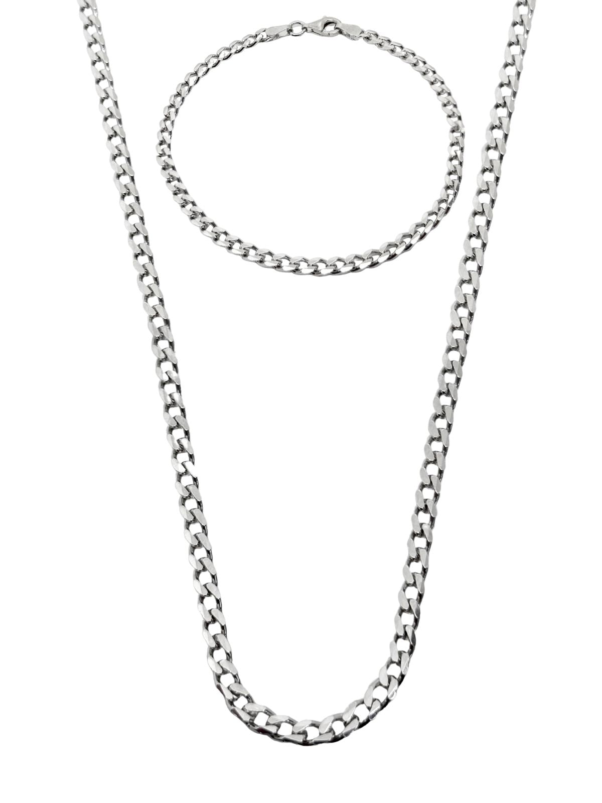 Beyaz Altın Kaplama Gurmet Gümüş Zincir Kolye&Bileklik Seti 3mm