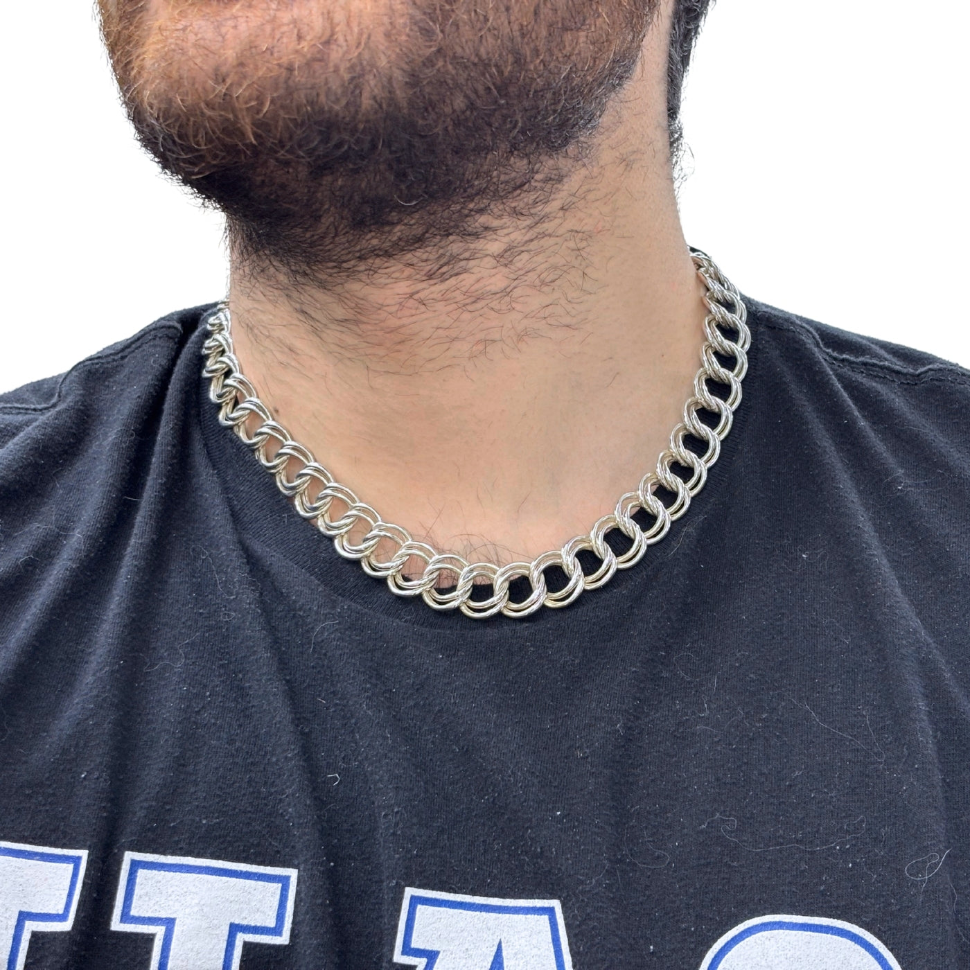 Çift Halkalı Kalın Gümüş Zincir Kolye 46.5CM Özellikleri:
