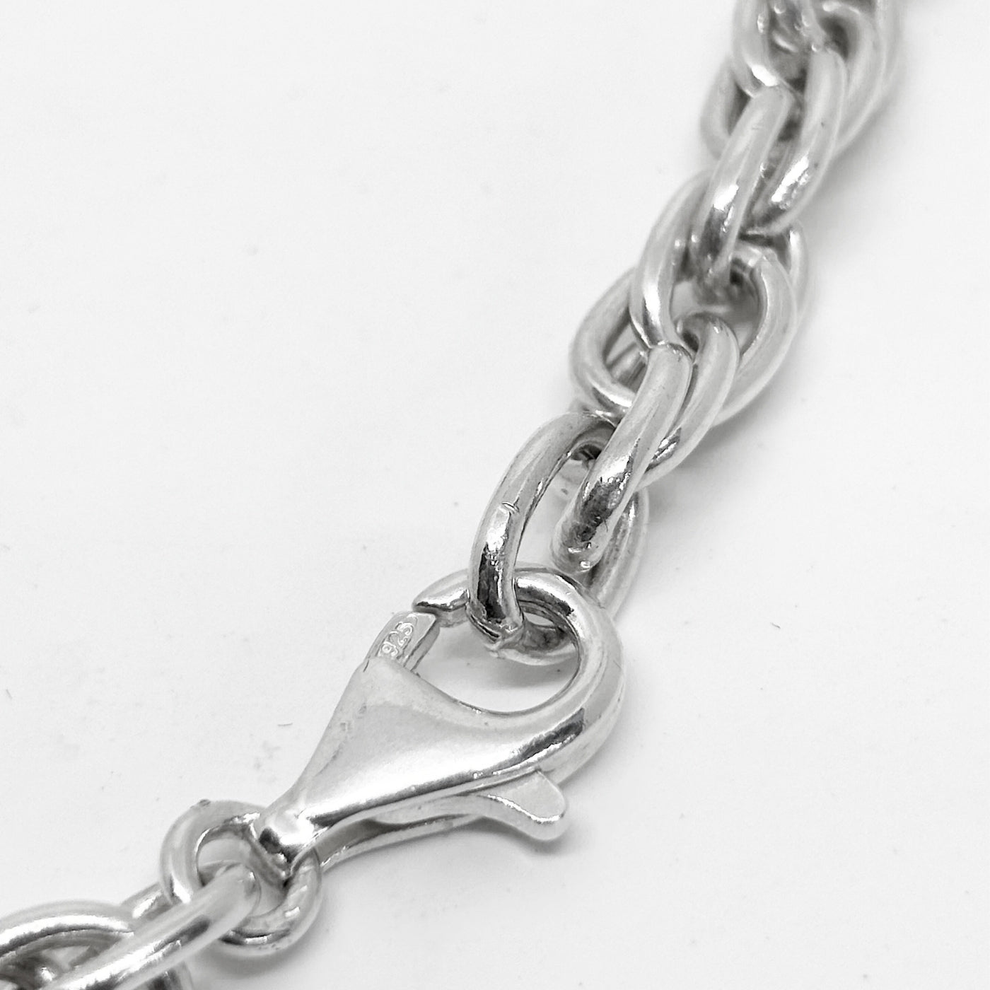 Çift Sık Halkalı Oval Gümüş Zincir Kolye, zarif tasarımı ve özelleştirilebilir uzunluğu ile tarzınızı mükemmel şekilde yansıtır. Oya Silver tarafından talebe göre ayarlanabilmesi sayesinde, bu kolye her boyna uyum sağlar ve şıklığınızı her zaman öne çıkarır.
