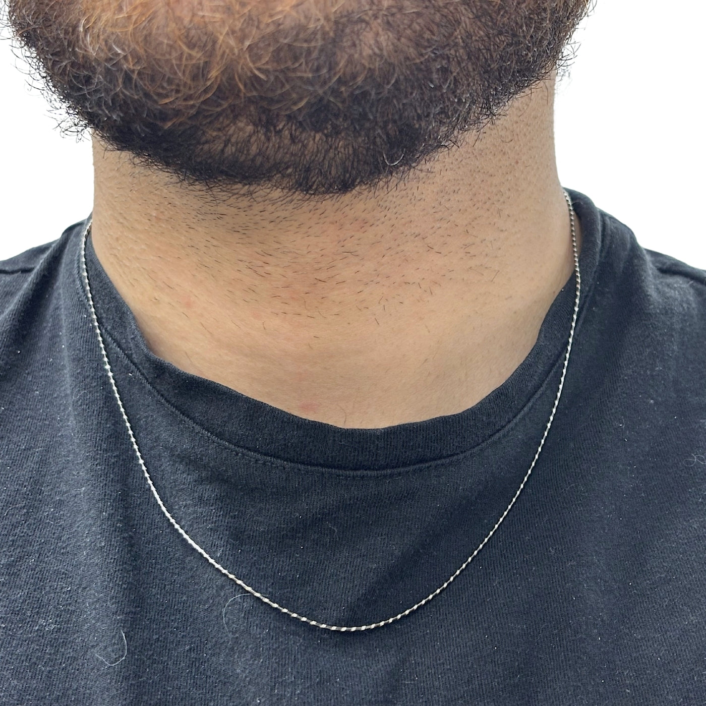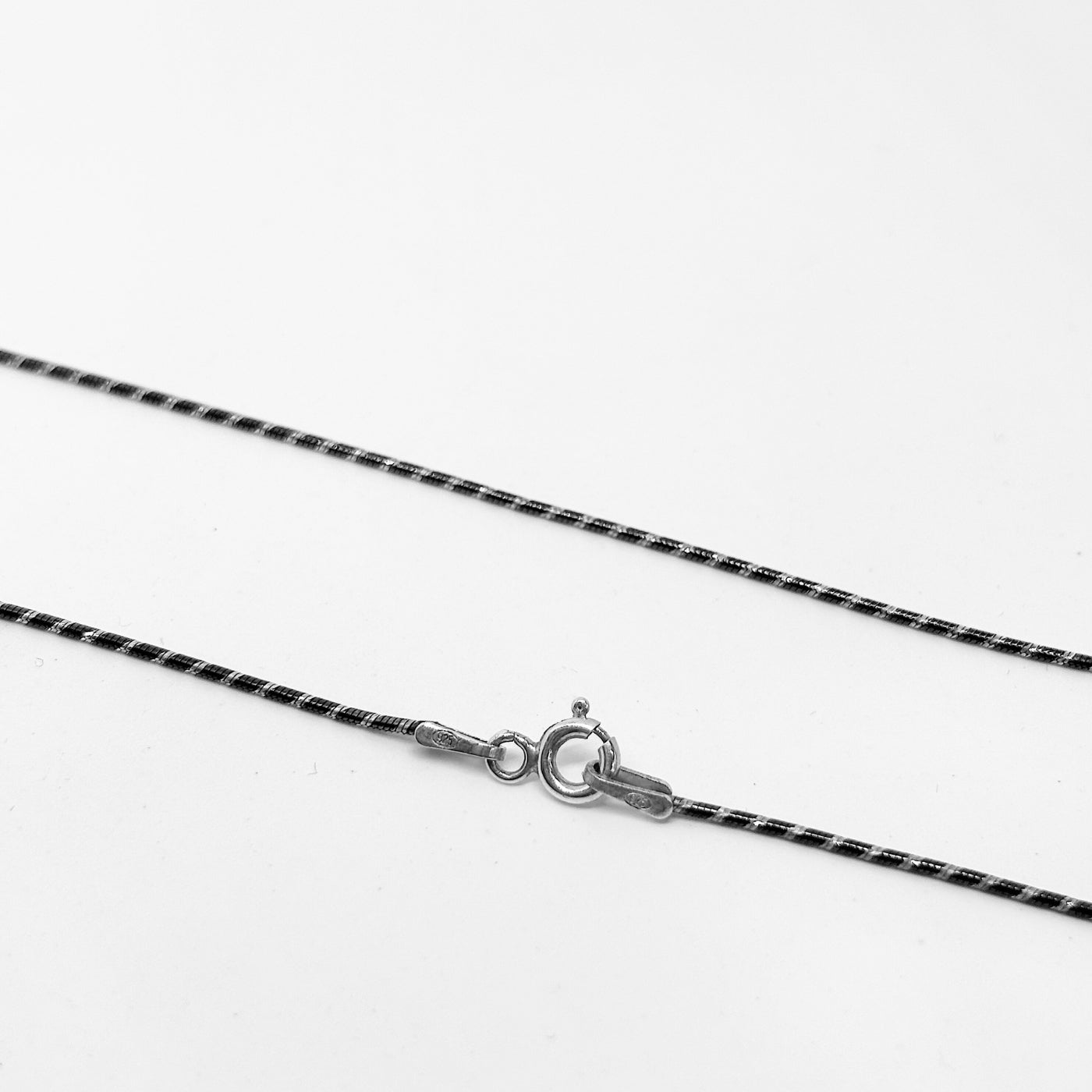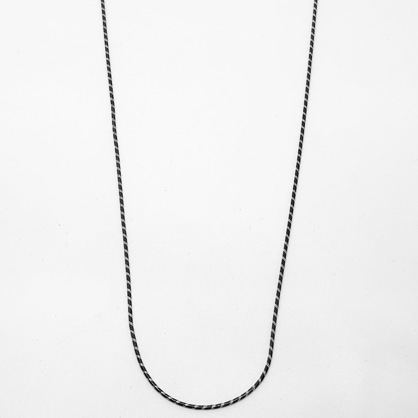 İnce Çizgili Siyah Gümüş Zincir Kolye 50CM