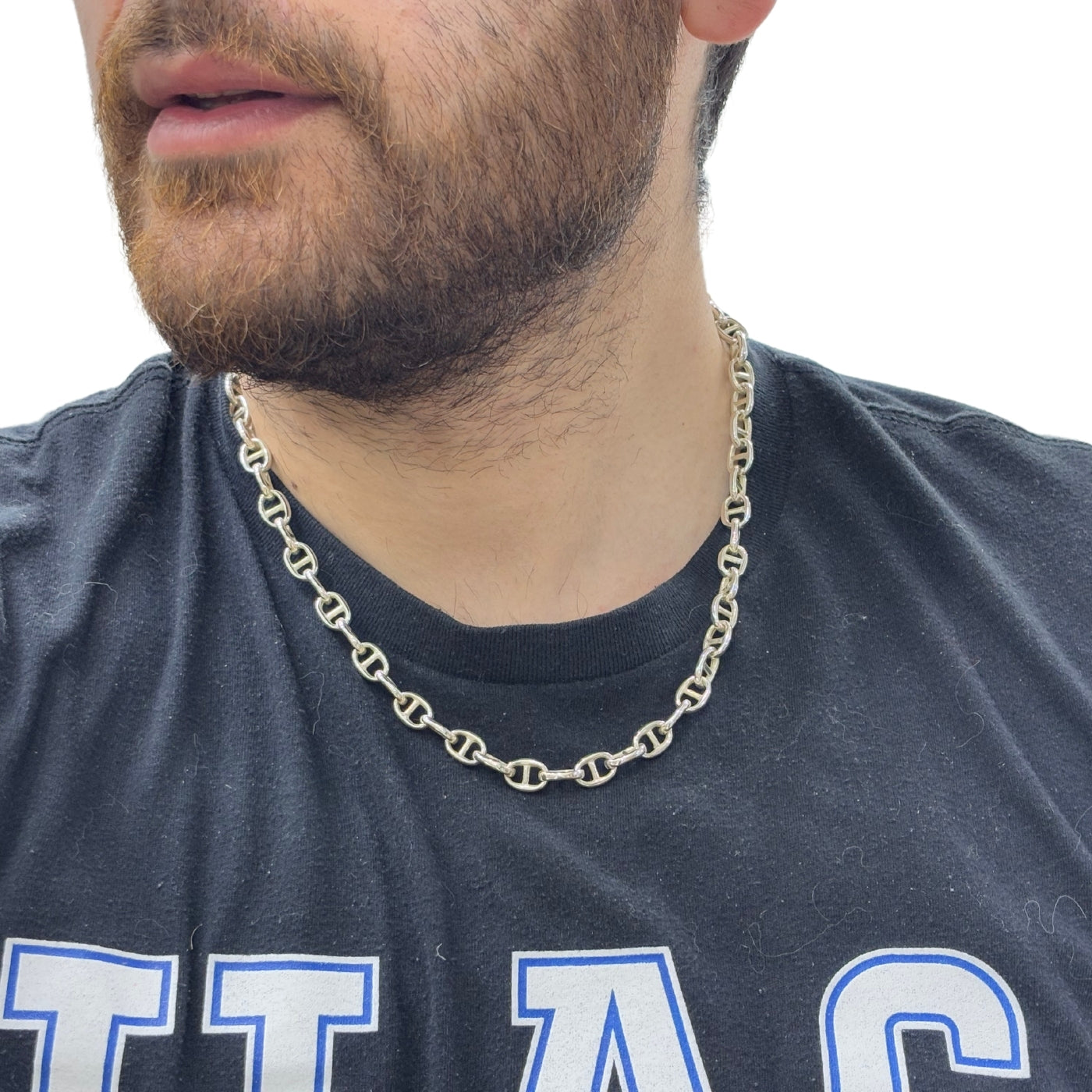 Oval Ortası Çubuk Gümüş Zincir Kolye 50CM
