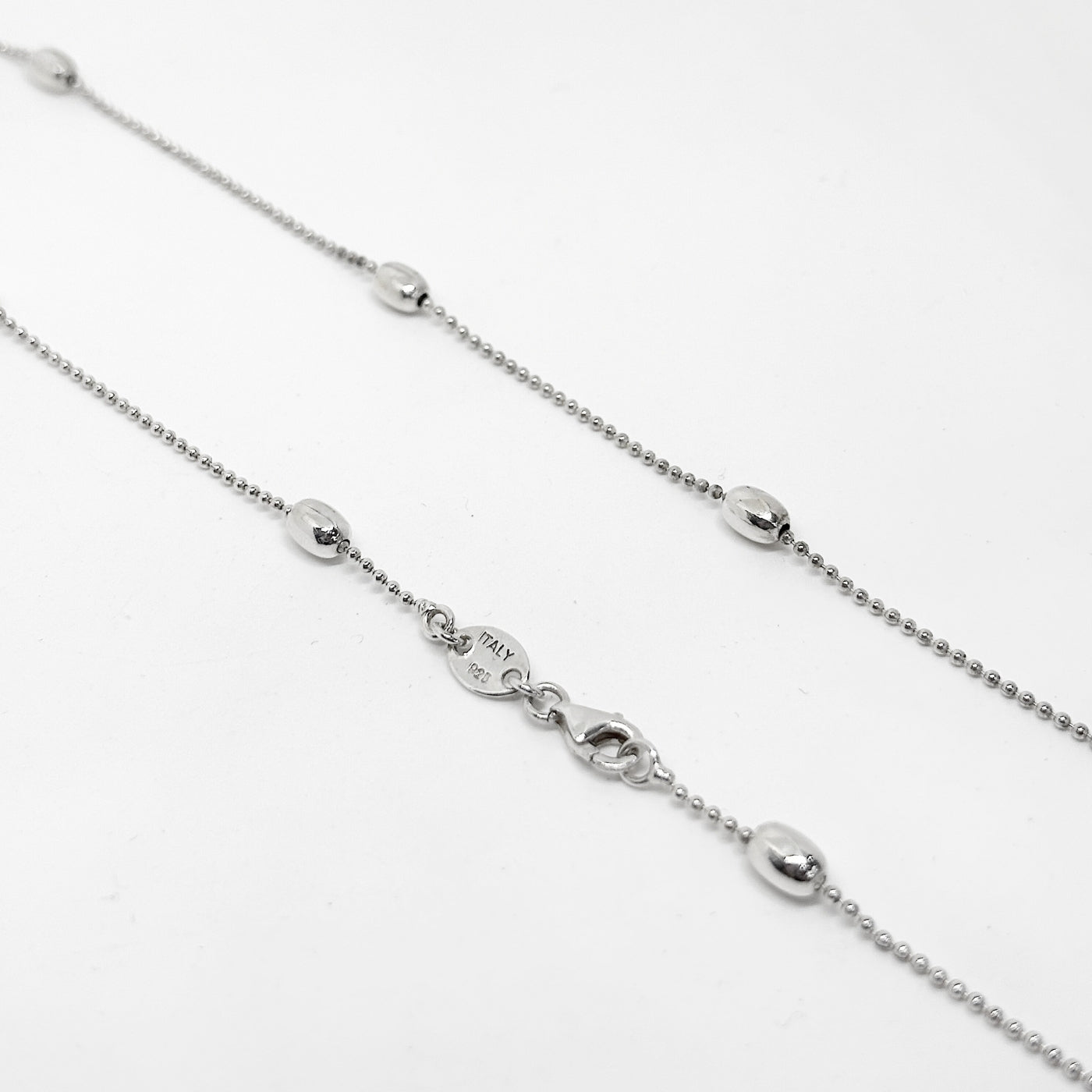 Oval Toplu Top-top Gümüş Zincir Kolye 47CM