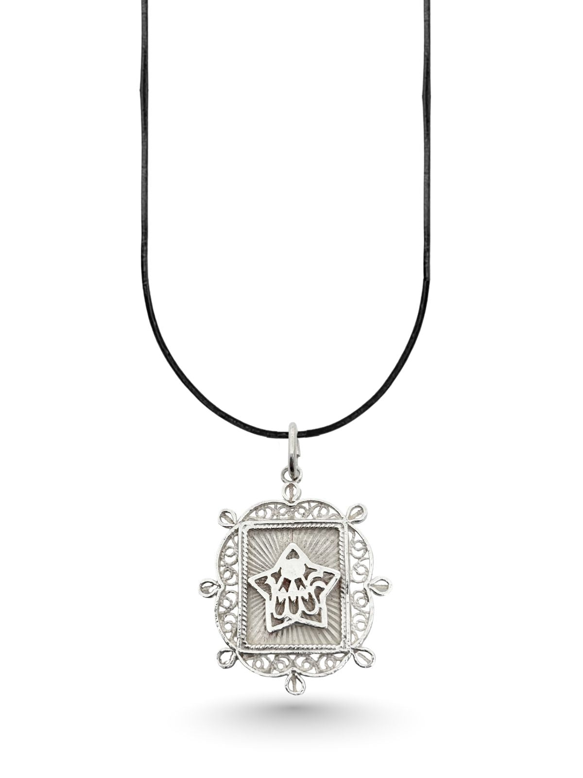 Yıldız İçinde Hat Sanatı İşlemeli Telkari Gümüş Kolye 4x2.8 cm [OYSY181]