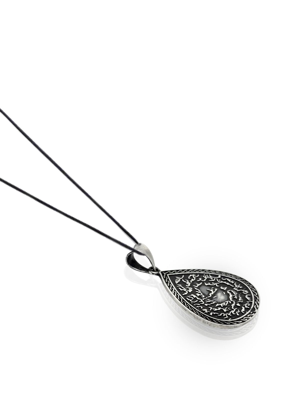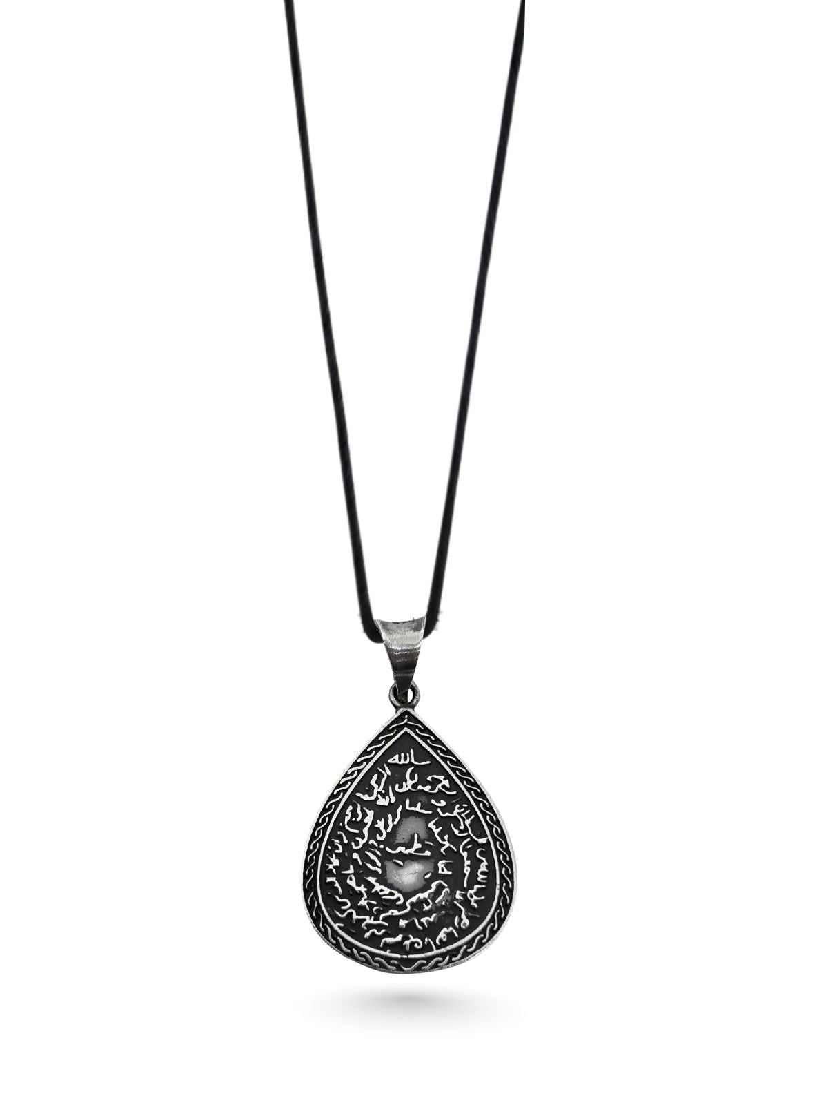 Ayetel Kürsi ve Nazar Ayeti İşlemeli Çift Taraflı Gümüş Damla Kolye 3.8x2.3 cm [OYSY164]