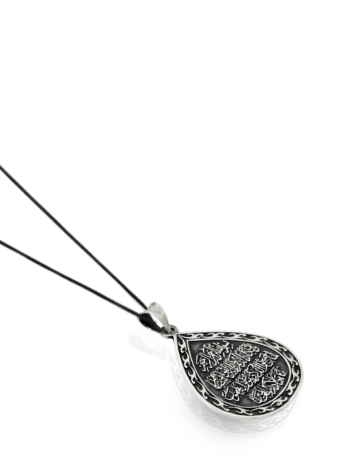Gümüş Oksitli Damla Model Nazar Ayeti Kolye 4.5x2.8cm
