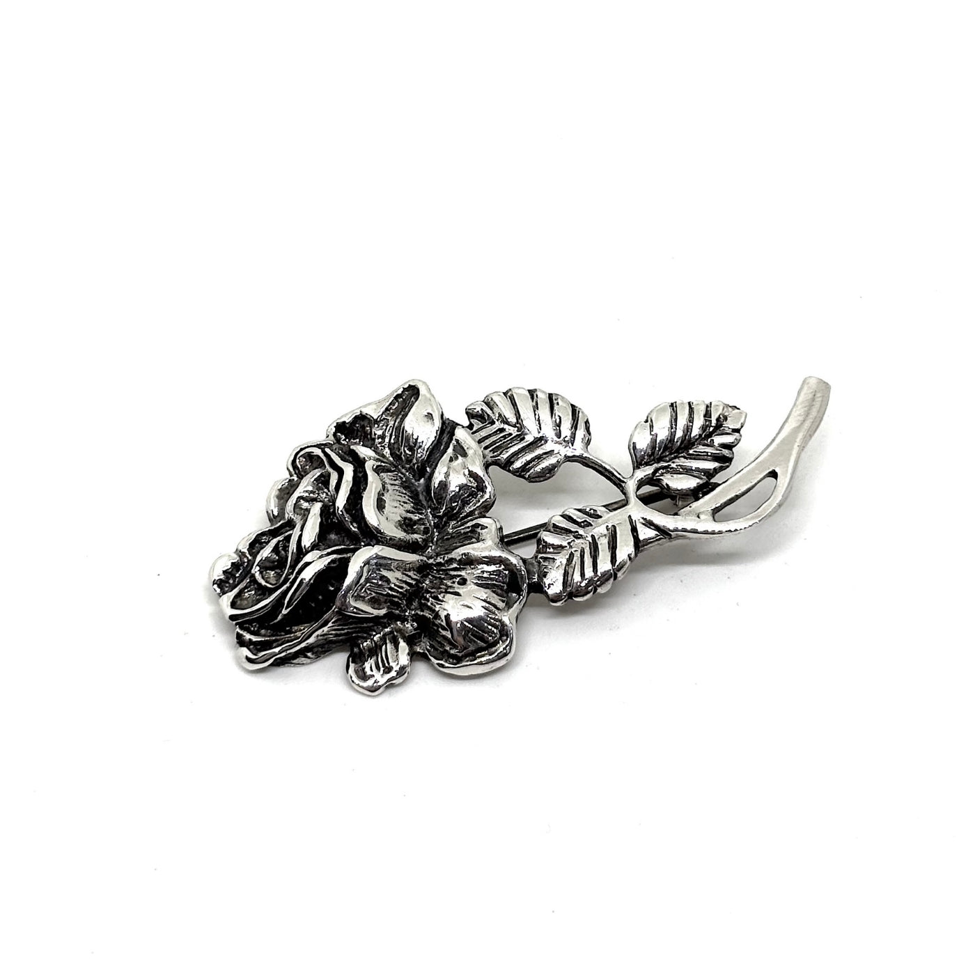 Gümüş Çiçek Bahçesi Koleksiyonu- Gümüş Gül Broş Modeli