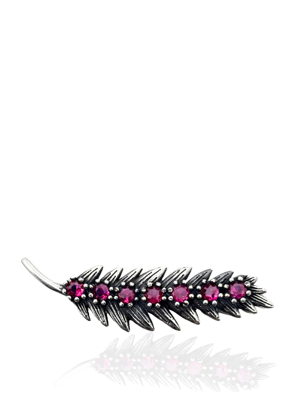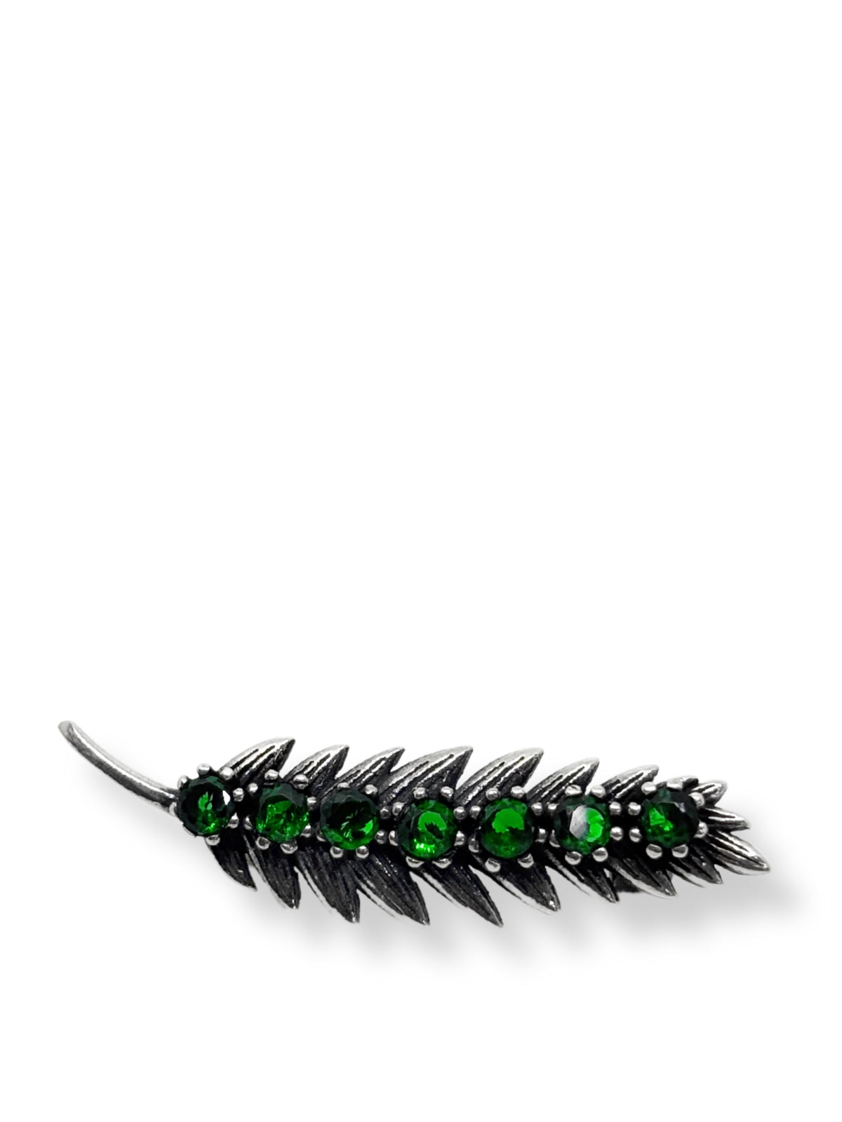 Işıltılı Karartılmış Gümüş Yaprak Kadın Broş Yaka İğnesi