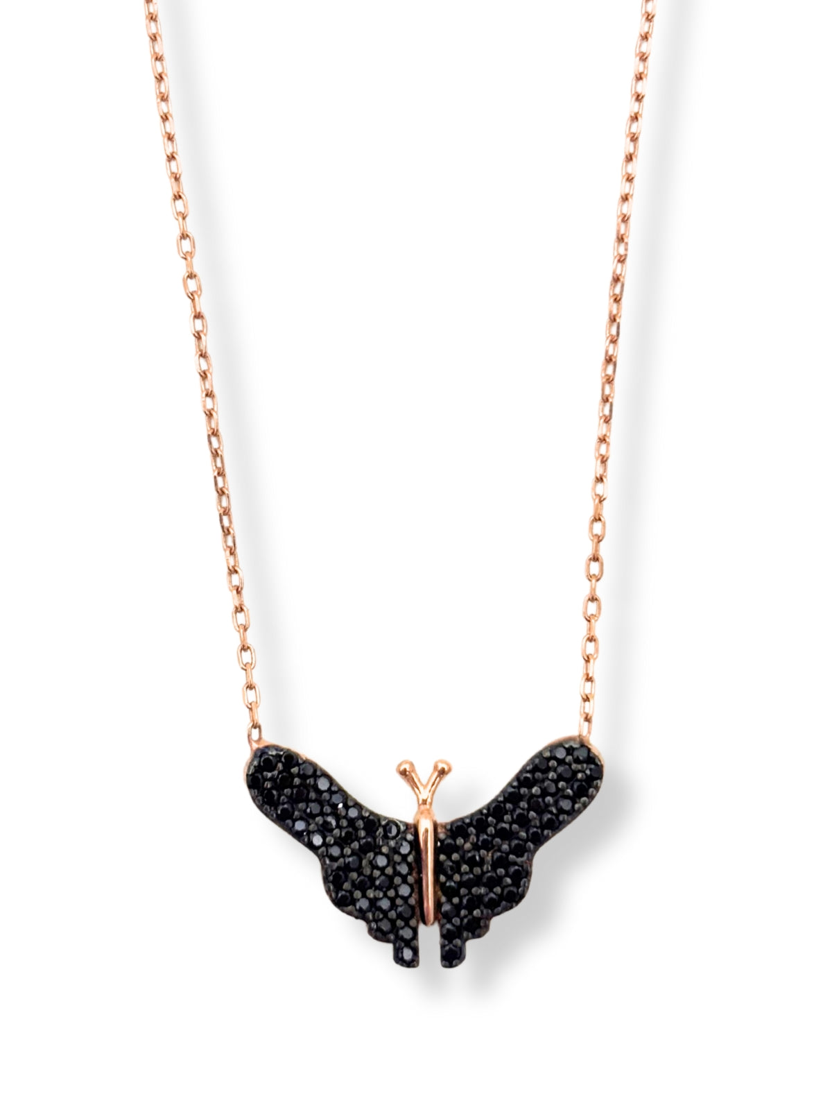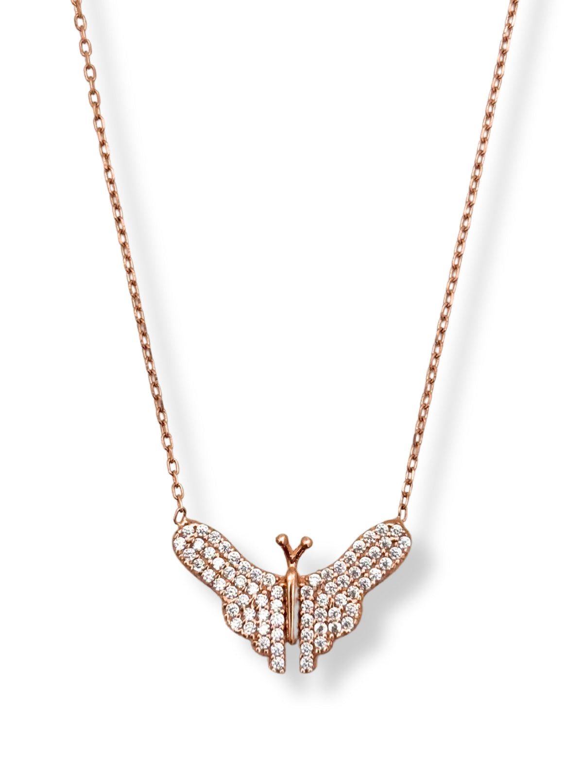 Işıltılı Rose Gold Kelebek Kadın Hayalet Gümüş Kolye