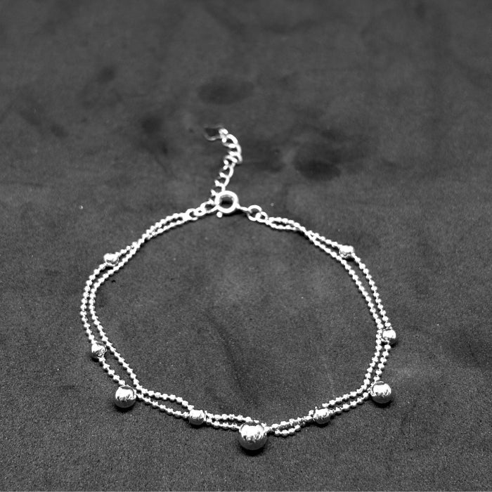 Çift Zincirli Nokta Figürlü Gümüş Bileklik