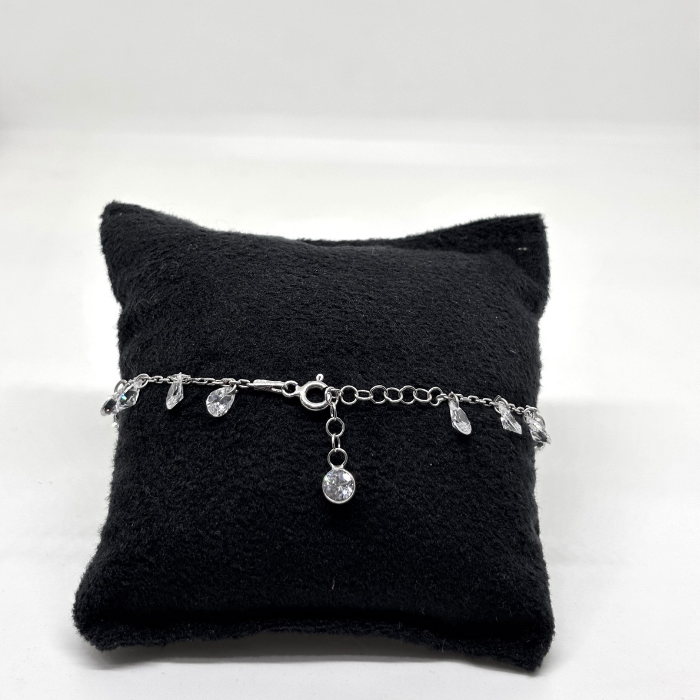 Damla Taş Sallantılı Gümüş Kadın Zincir Bileklik