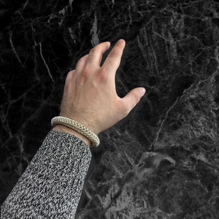 Kalın Sık Halka Dokuma Gümüş Bileklik