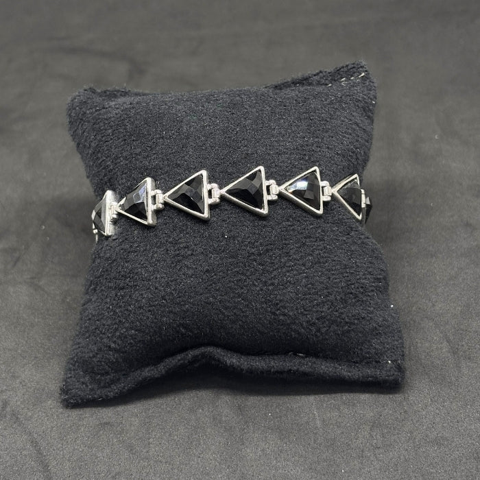 Oniks Taşlı Üçgen Gümüş Bileklik