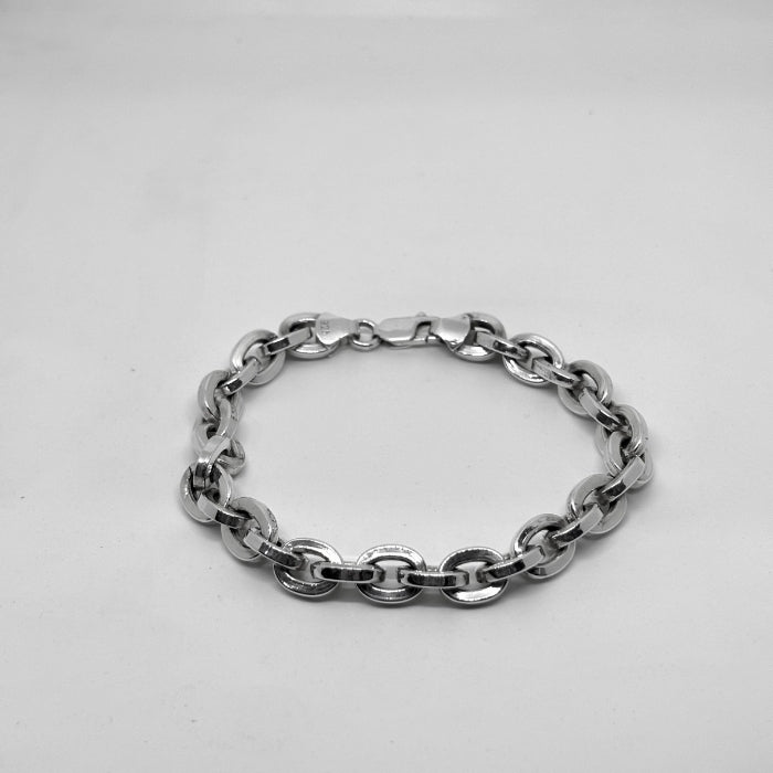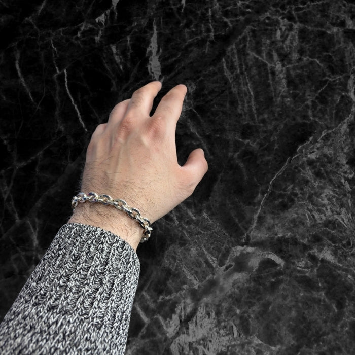 Oval Halka Gümüş Zincir Bileklik