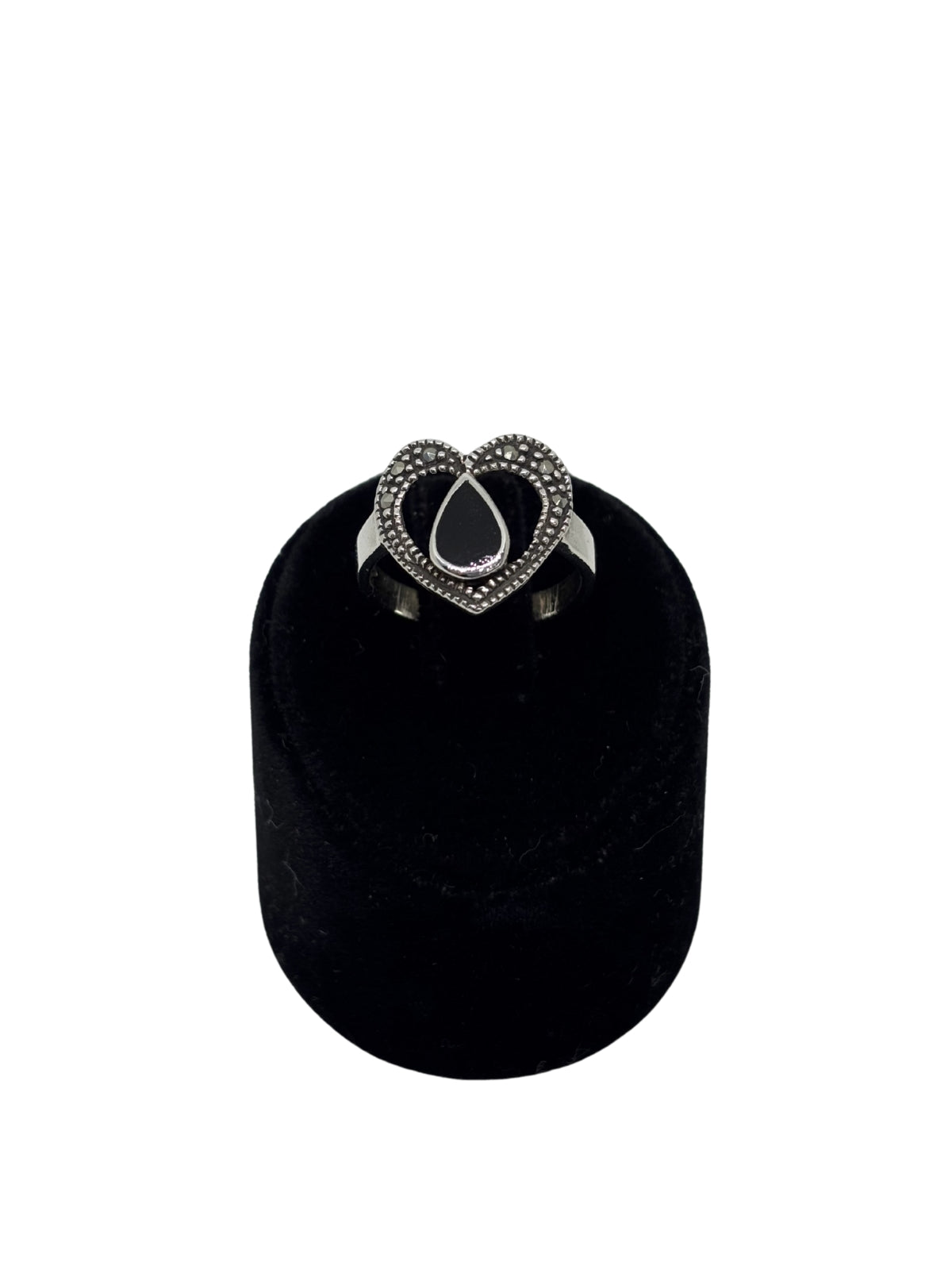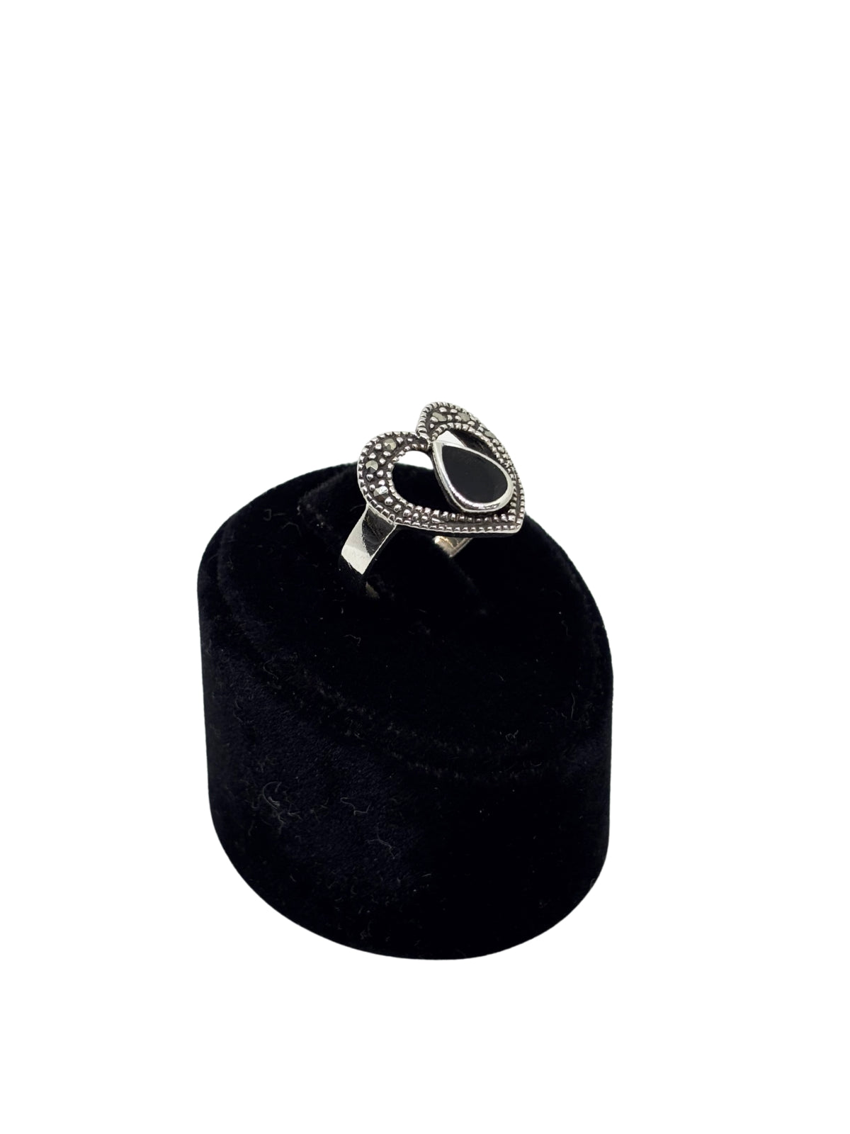 Markazit Işıltı Kalp Ortası Siyah Mineli Gümüş Kadın Yüzük