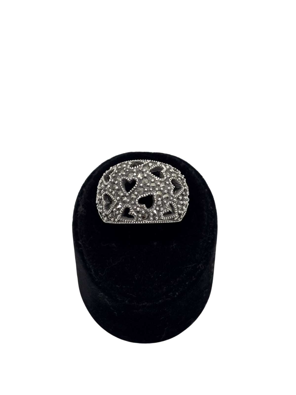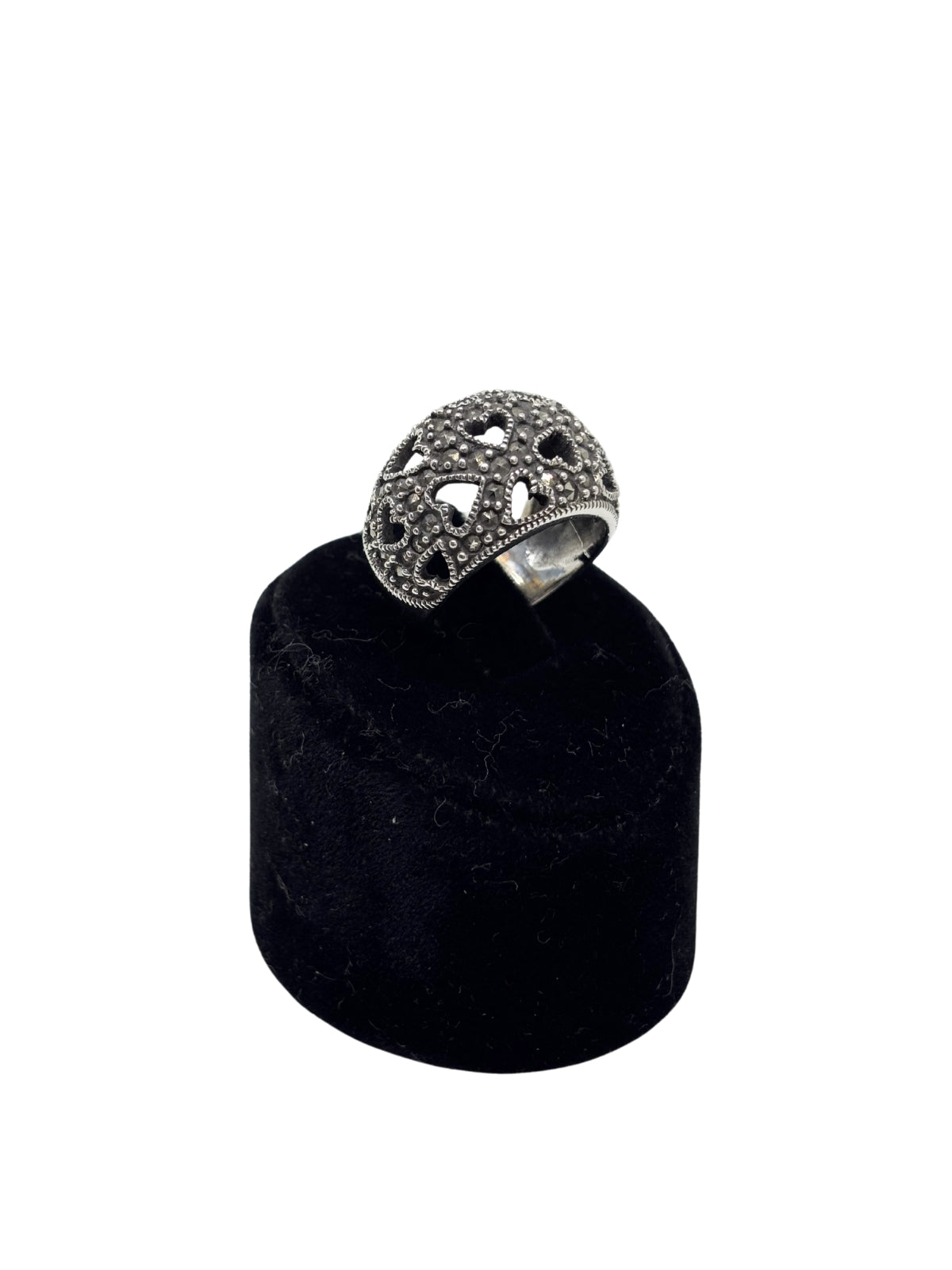 Markazit Taşlı Ajurlu Kalp Desen Kubbe Gümüş Kadın Yüzük