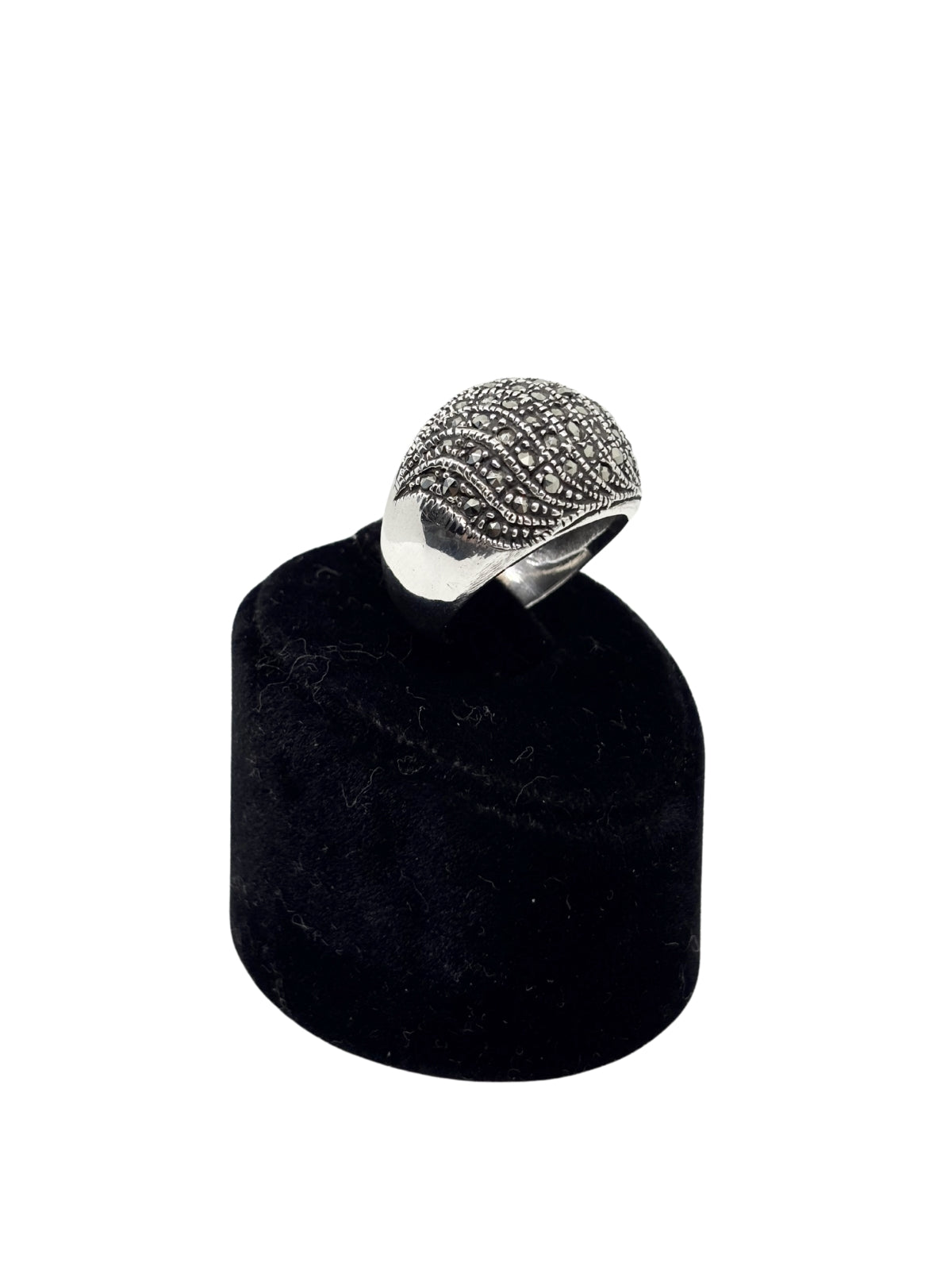 Markazit Taşlı Dalgalı Desen Kubbe Gümüş Kadın Yüzük