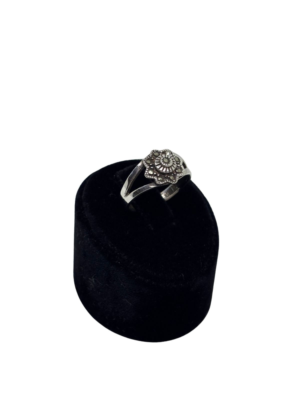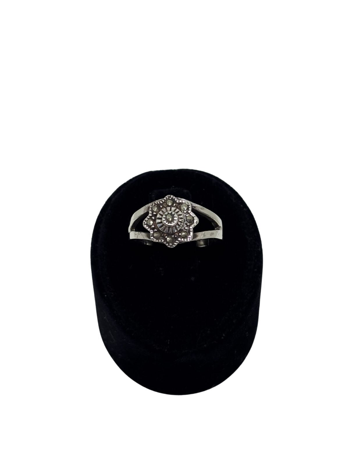 Markazit Taşlı Minimal Çiçek Gümüş Kadın Yüzük
