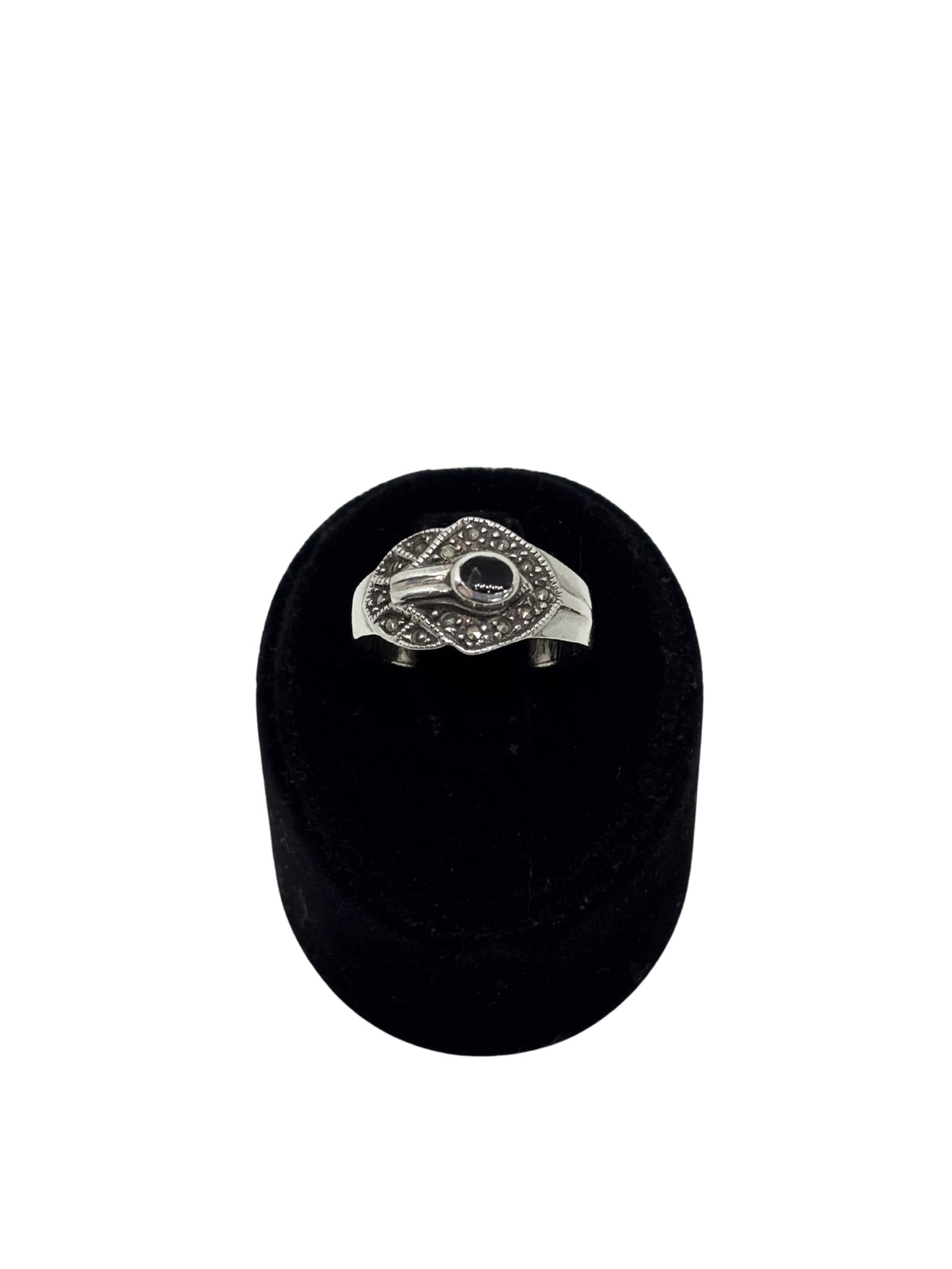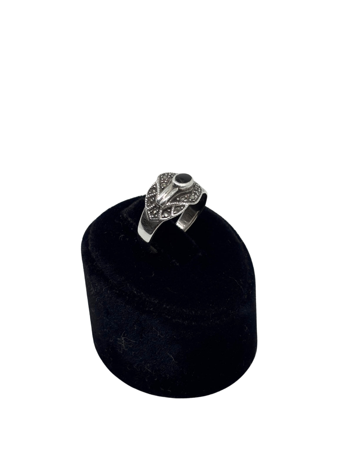 Markazit Taşlı Siyah Mineli Gümüş Kadın Yüzük